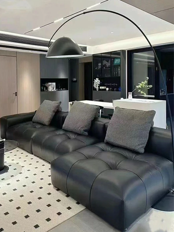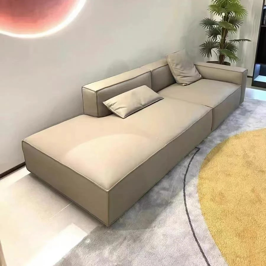 ラグジュアリーな後現代スタイルの本革ソファセット - シンプルで洗練されたデザインが魅力のイタリアンミニマリズム、あなたの別荘やモデルルームにぴったりの高品質リビング家具。