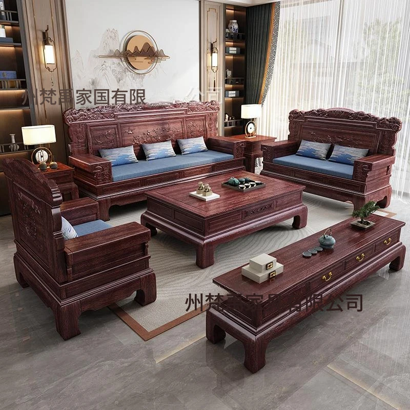 九五之尊 花梨木 全実木 古風デザイン ソファセット 中式彫刻 冬夏兼用 リビング用 クラシック家具で、優雅な空間を演出!