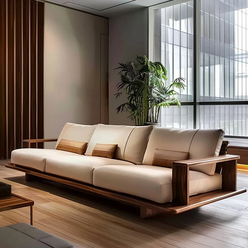 新中式ホワイトアッシュウッドソファ2025年新作!高級感あふれるライトラグジュアリーなブラックウォールナット製、リビングルームにぴったりな直線デザインの本格的な無垢材家具。快適さと美しさを兼ね備えた一品をぜひお求めください!