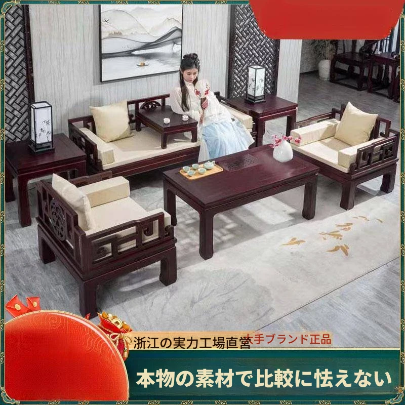 中華風全木製ソファ 新しいリビングに最適な組み合わせ式 ユリの木を使用したアンティークスタイルのソファ - 優雅な宮廷デザインで、心地よいくつろぎの空間を演出します!