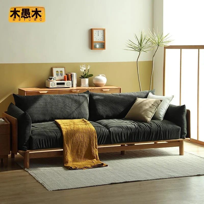 全実木製シンプルソファーセット|小型スペースに最適な1+2+3現代中式田舎風ソファ|温かみのあるデザインで心地よいリビングを演出!