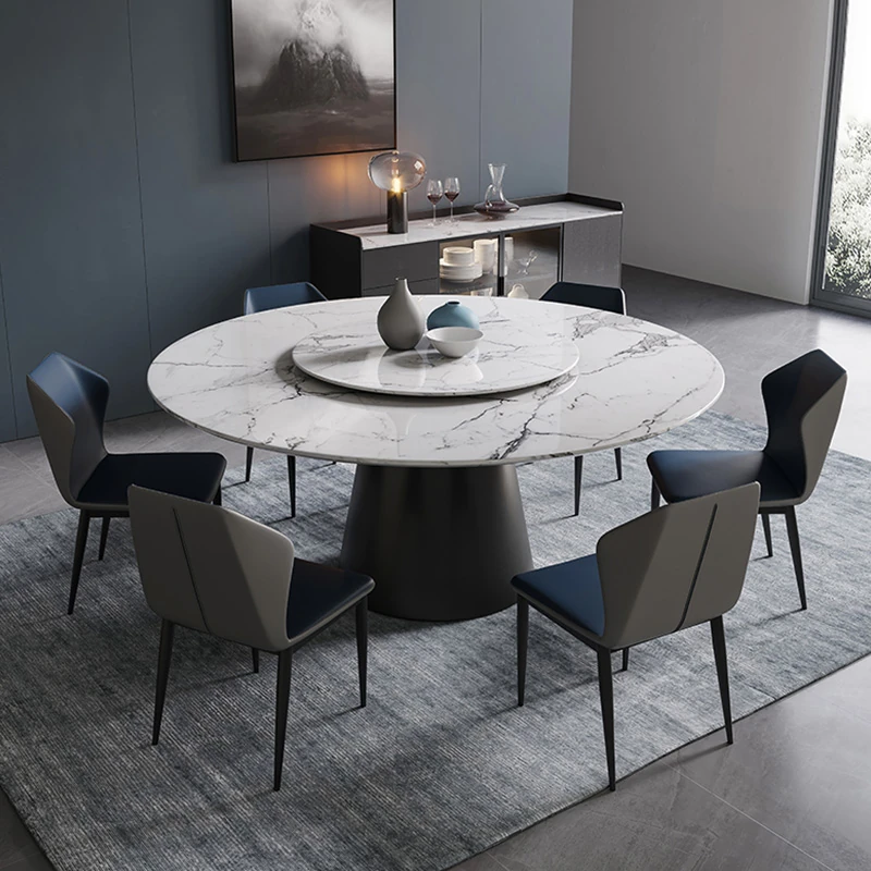 輸入された大理石のダイニングテーブル、モダンでシンプルなデザイン、天然素材の贅沢感を楽しめます。全室にマッチするスタイルで、内蔵回転盤付きの無垢材のラウンドテーブルで、毎日の食卓を特別な空間に演出します。
