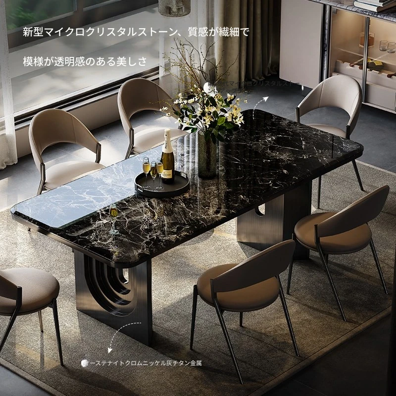 誠駿の天然大理石ダイニングテーブル - 高級感あふれる長方形イタリアンミニマリズムデザイン、マイクロクリスタルストーンテーブルとチェアのコンビネーション。優雅な食卓を演出し、特別なひとときをお過ごしください。