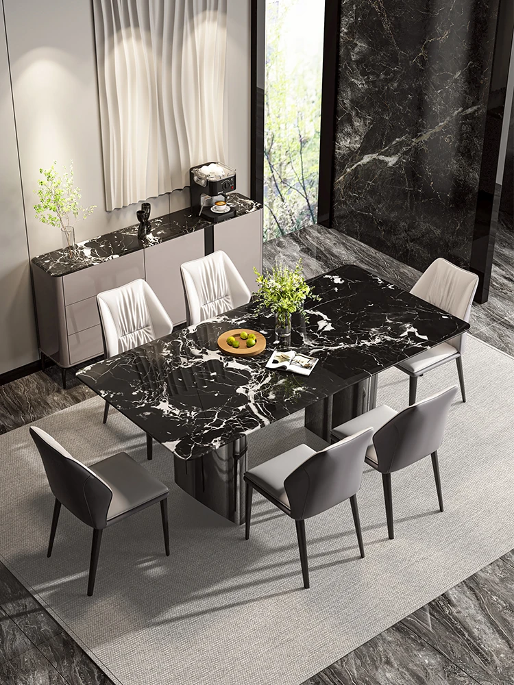 超高級感!天然大理石天板の長方形軽奢ダイニングテーブル&チェアセット – モダンでシンプルなデザイン、あなたの家をスタイリッシュに演出します。
