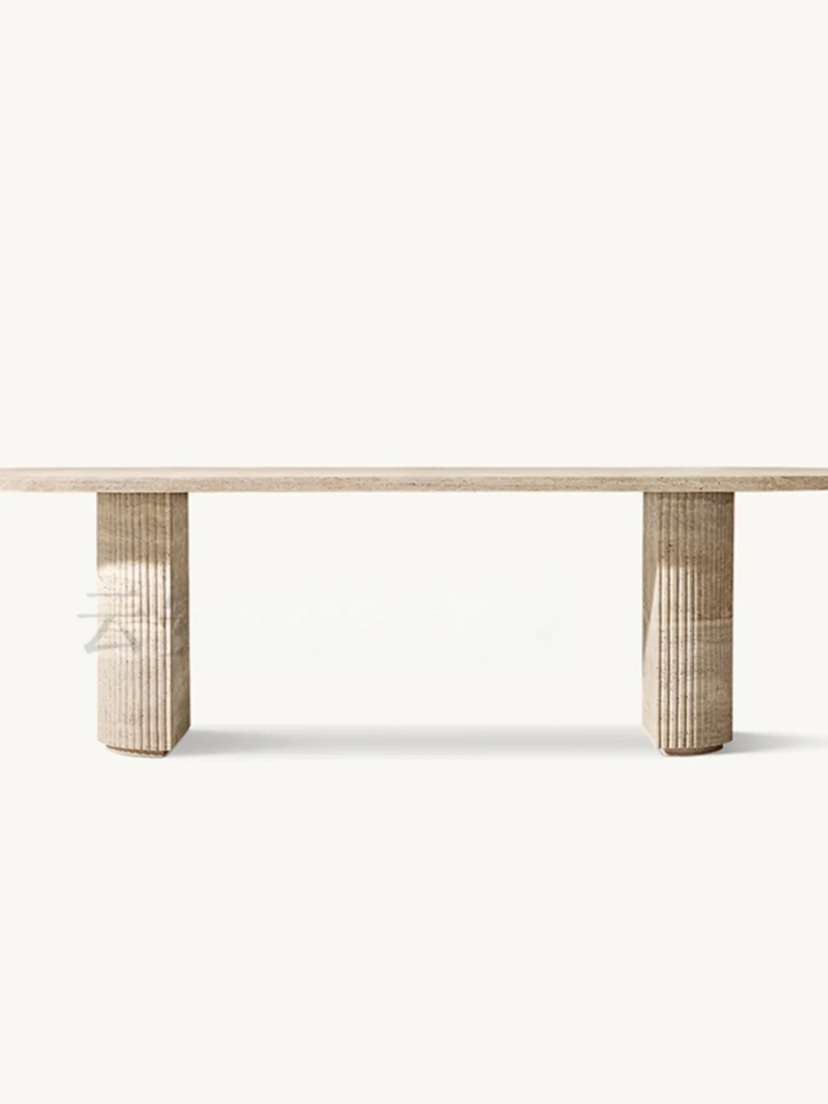 天然洞石大理石の侘寂風オーバルデザインテーブル - 高級感溢れる北欧スタイル、ホテルや別荘に最適!美しい天然素材で、心を癒す空間を演出します。