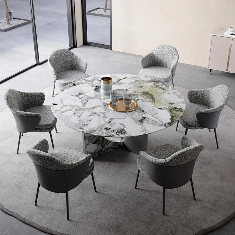 イタリアンラグジュアリー ウッドサークル dining table & chair セット アート感溢れる大理石ターンテーブル デザイナーによるミニマリストデザイン どんなダイニングにもぴったり!