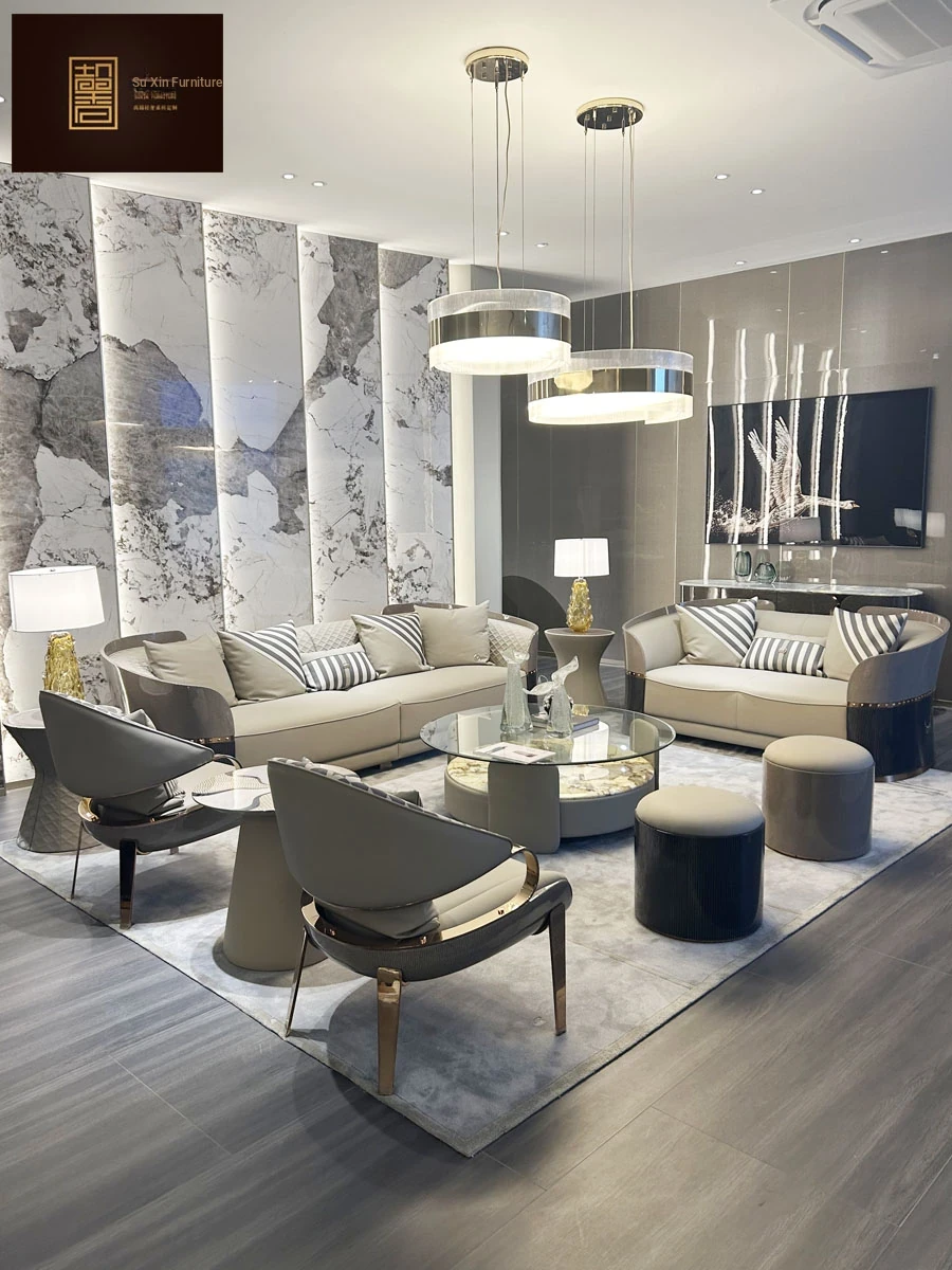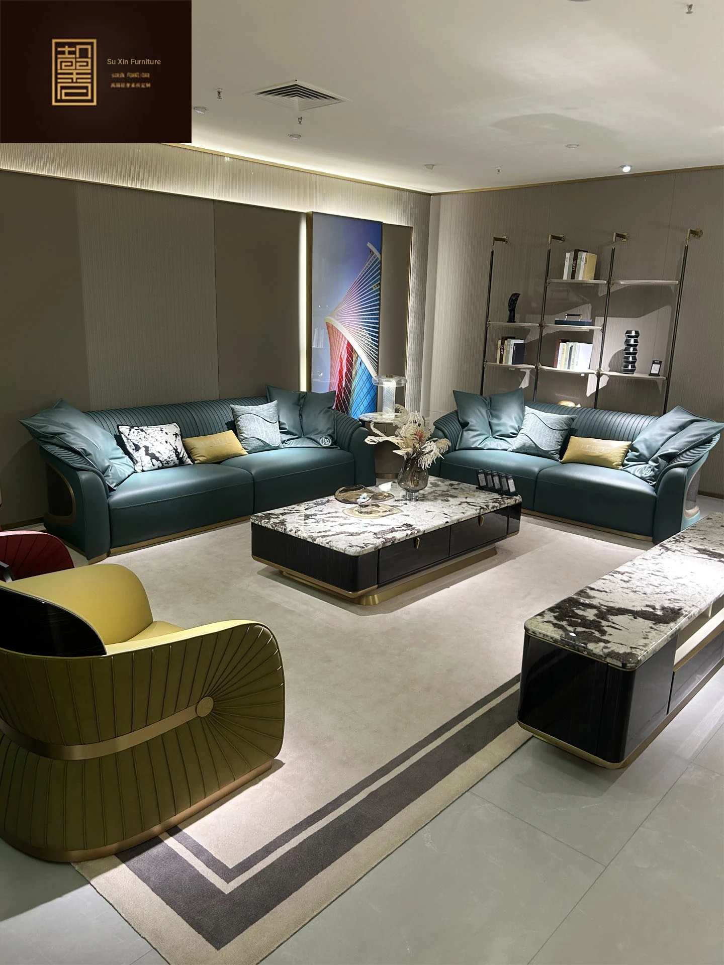 Italian Luxury Genuine Leather Sofa Set for Spacious Villas and High-End Living Rooms - Modern Curvy Design for Contemporary Open Floor Plans