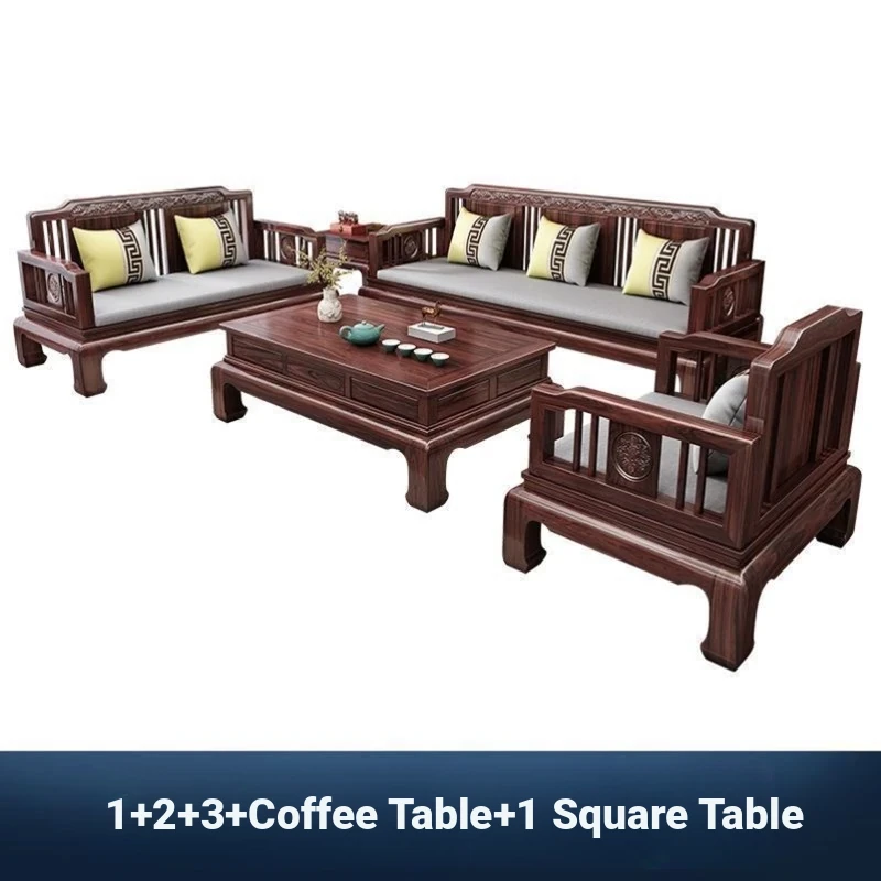 Modern Chinese Style Solid Wood Sofa Set - Minimalist Fabric Sofa for Living Room, Zen-inspired Design, Villa-quality Rosewood Furniture