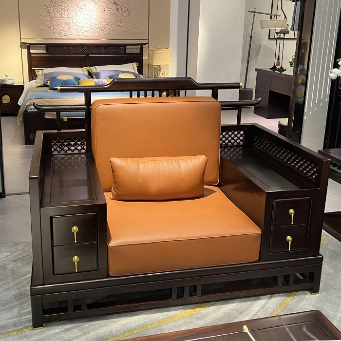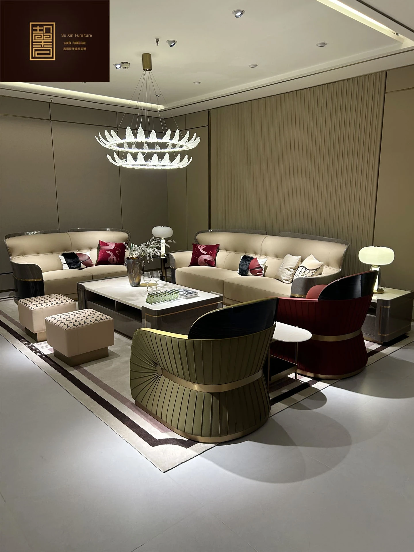 Designer New Chinese Style Sofa - Modern Minimalist Luxury Leather Sofa for Villas, Living Rooms, Sample Rooms, and Zen-Inspired Homestays. Perfect Blend of Elegance and Comfort!