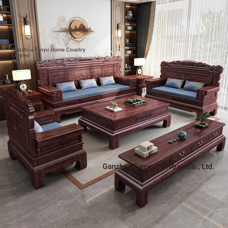 Ninety-Five Prestige Solid Rosewood Antique-Style Sofa Set with Intricate Carvings - Versatile for Winter and Summer, Perfect for Elegant Living Rooms and Classic Home Décor.