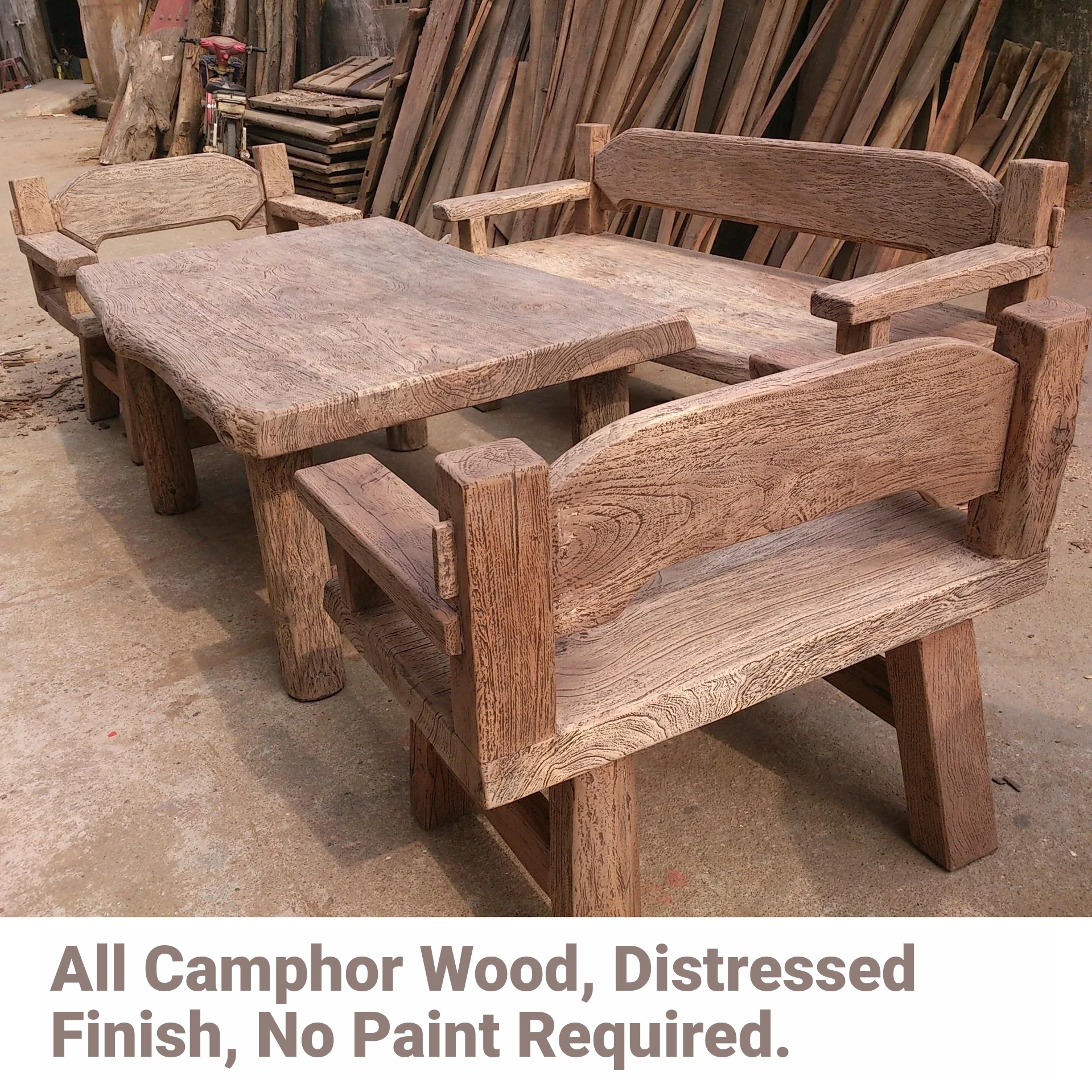 Eco-Friendly Solid Camphor Wood Sofa Chair and Coffee Table Set - Simple Rustic Style for Guesthouses and Living Rooms, Perfect for Welcoming Guests