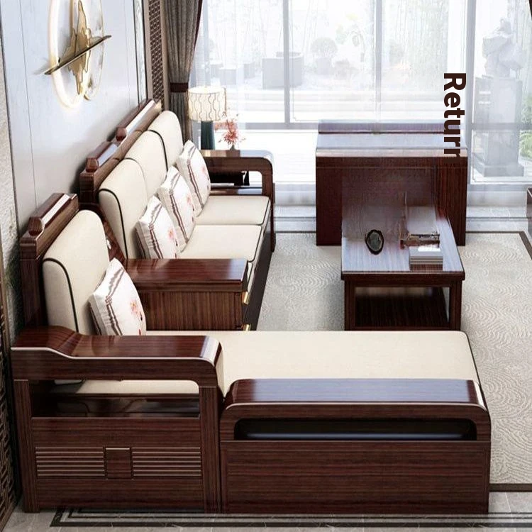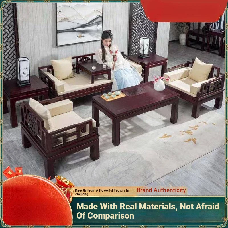 2024 New Purple Sandalwood Solid Wood Sofa - Versatile Multi-Combination Design for Small Spaces, Ideal for Chinese Living Rooms, Winter and Summer Use, with Storage Features