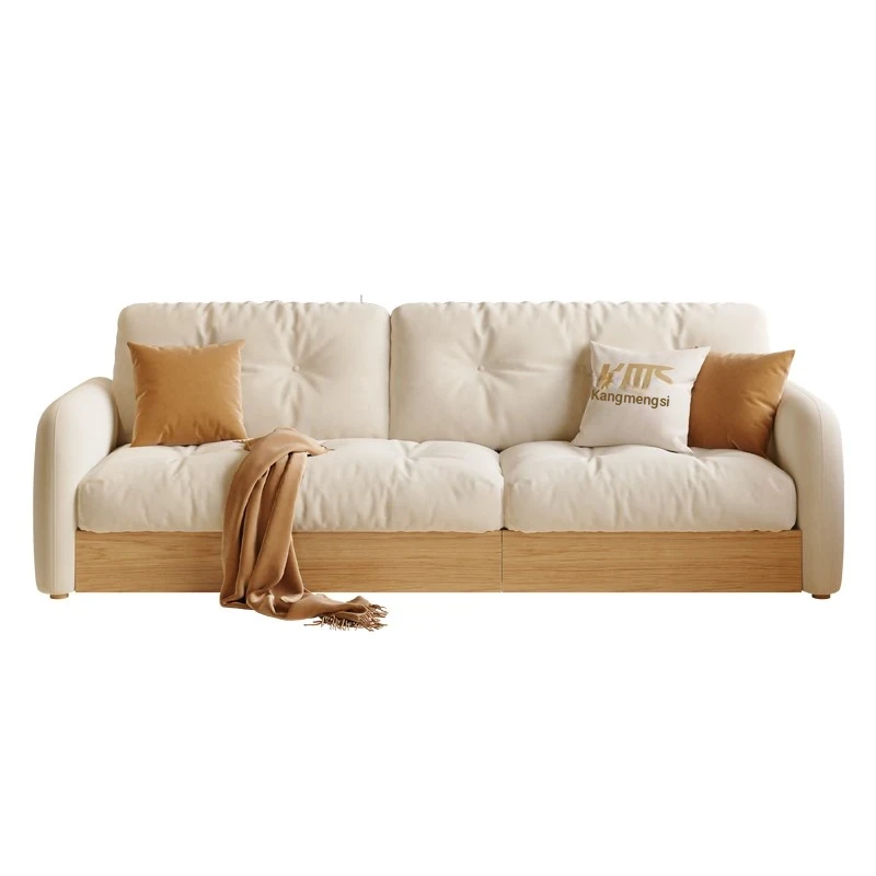 Japanese Style Storage Cat Scratch Velvet Cloud Sofa - Compact, Retractable Cream-Colored Solid Wood Sofa Bed for Home Use, Perfect for Small Spaces!