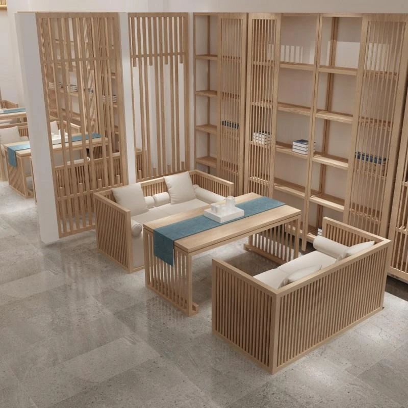 Modern Chinese Style Solid Ash Wood Lounge Area Sofa for Tea House, Business Negotiations, Commercial Bar, and Relaxing Restaurant Seating - Elegant Booth Design