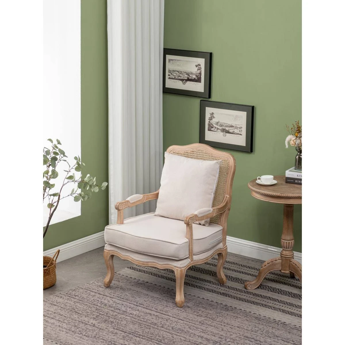 Rustic Rattan-Inspired Solid Wood Single Armchair - Vintage Style Small Apartment Tiger Chair, Perfect for Cozy Spaces and Charming Interiors