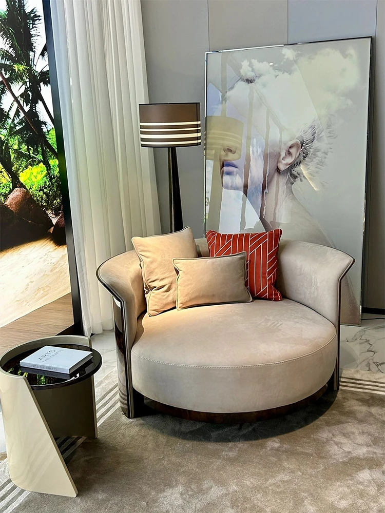 Luxury Bentley Round Couple Leisure Chair - Modern Italian Villa Style for Living Room, Bedroom, and Balcony - Premium Leather and Solid Wood Sofa Chair. Perfect for Romantic Spaces!