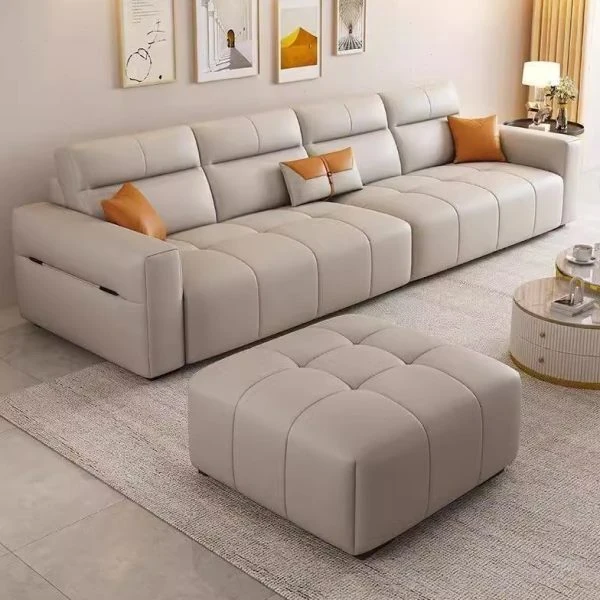 Modern Minimalist Light Luxury Cat Paw Leather Sofa - Cream Style Straight-Line New Design Genuine Leather Long Sofa for Living Room