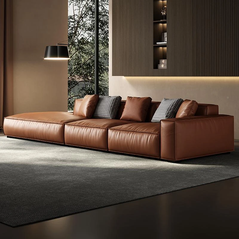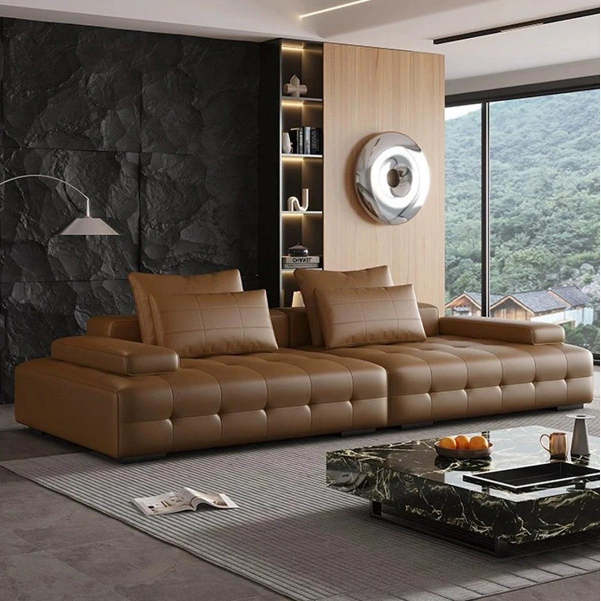 Italian Horizon Genuine Leather Sofa - Modern Large-Scale Living Room Furniture, Premium Top-Grain Cowhide, Unique Tofu Block Design for Spacious Homes