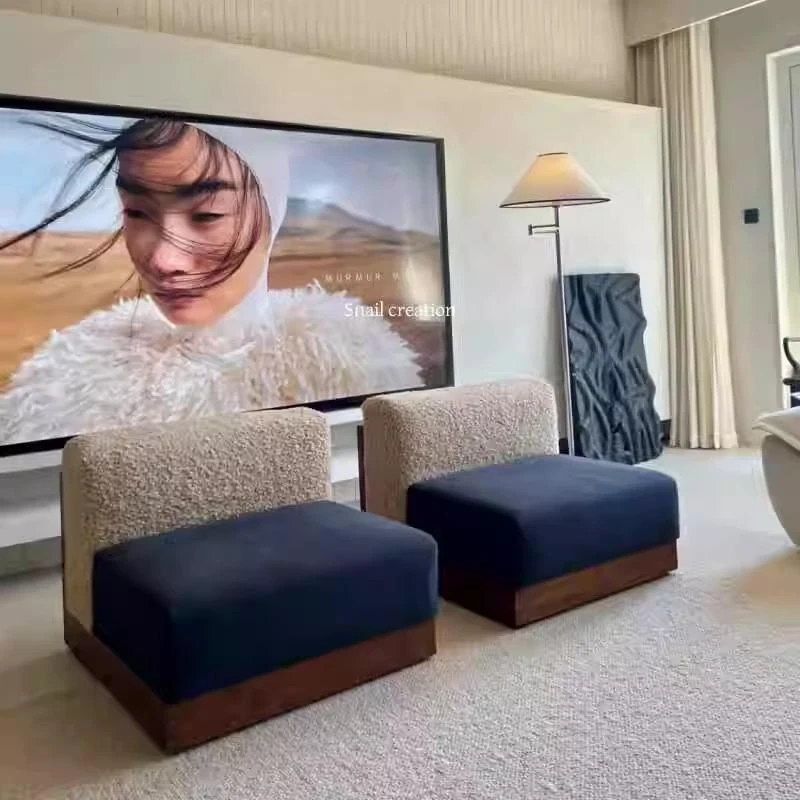 Modern Minimalist Luxury Single Sofa - Color-Block Design, Lamb Fleece Upholstery, Solid Wood Frame, Creative Designer Piece for Stylish Living Spaces