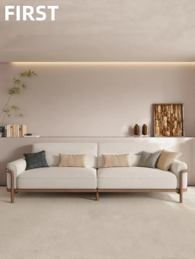 New Chinese Style High-End Minimalist Full Solid Wood Fabric Sofa for Small to Medium Living Rooms, Hotels, and Guesthouses – Stylish New Straight-Line Design