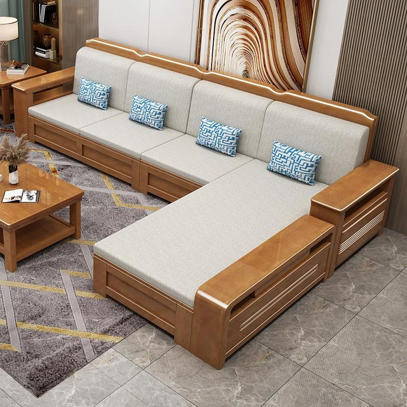 Stylish Chinese Living Room Furniture: Solid Wood Sofa Set with Storage, Versatile Daybed for All Seasons, Perfect for Small Spaces - Elegant Fabric Sofa Collection