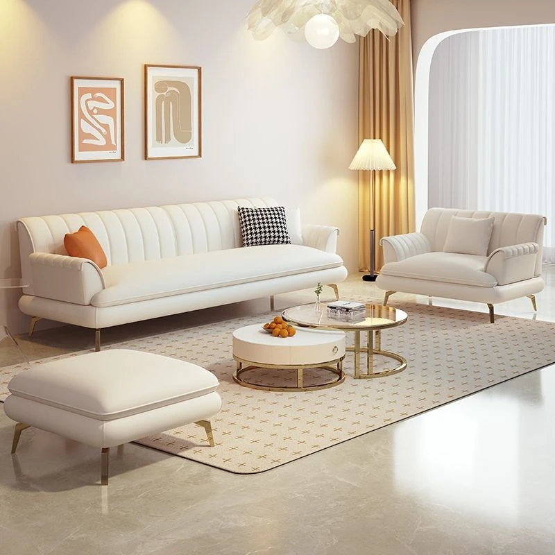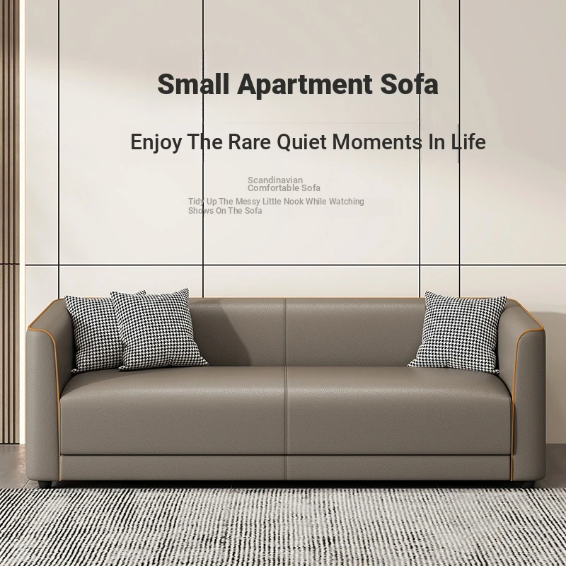 Modern Minimalist Italian-Style Leather Sofa Set - Compact Tofu Block Design for Small Living Rooms - Trendy Three-Seat Straight Sofa Combination