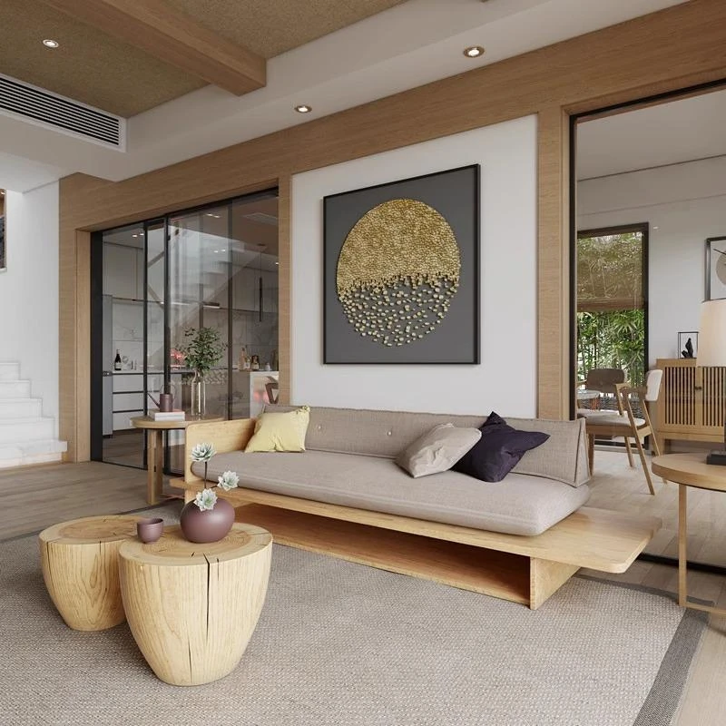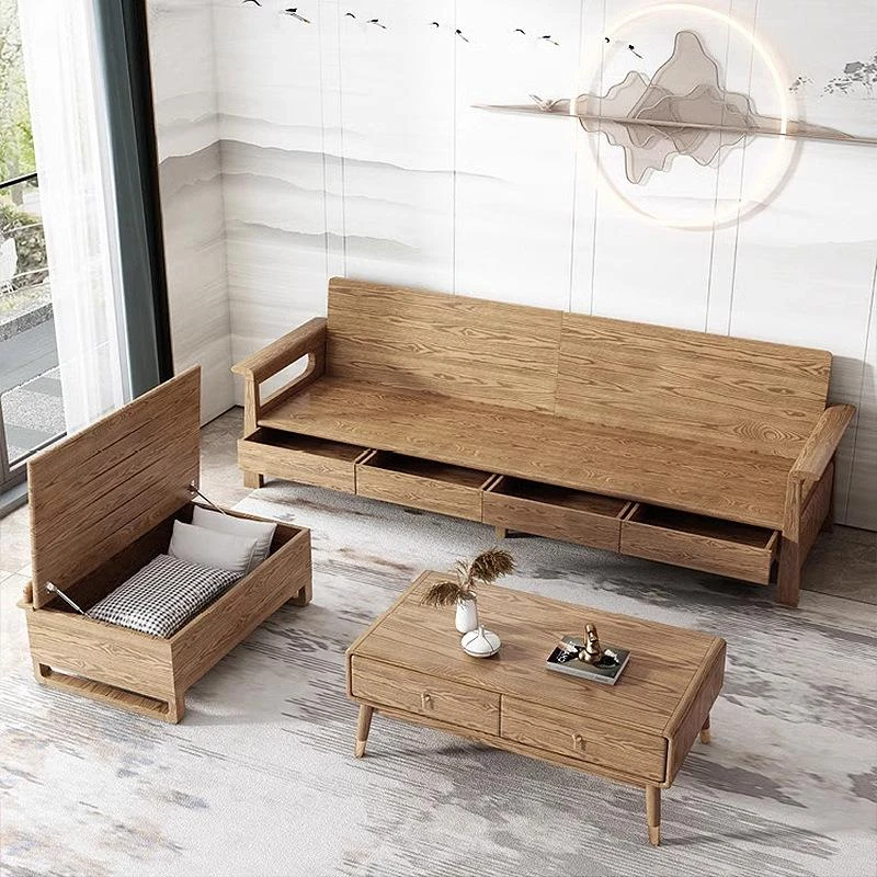 Nordic Solid Wood Sofa Set - Modern Minimalist Design, Versatile for All Seasons, Made of Ash Wood with Drawer Storage, Perfect for Small and Large Spaces.