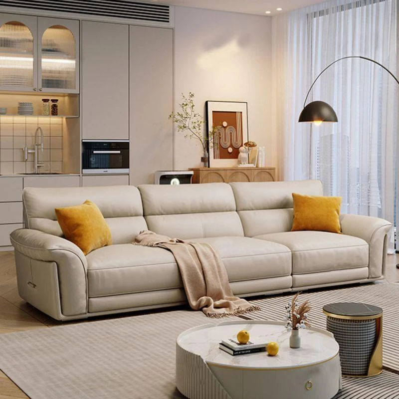Italian Minimalist Luxury Genuine Leather Sofa - Top Grain Cowhide, Modern Nordic Design for All Sizes, with Sturdy Iron Frame