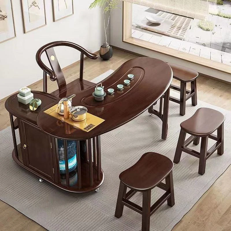 Elegant New Chinese Style Solid Wood Rotating Tea Table and Chair Set - Versatile Balcony Coffee Table with Movable Design, Integrated Water Boiler, Perfect for Tea Brewing and Entertaining.