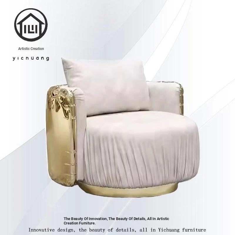 Luxury Designer Creative Velvet Sofa Chair – Modern Curved Stainless Steel Accent Chair for Villas, Living Rooms, and Hotels – Perfect Blend of Elegance and Comfort