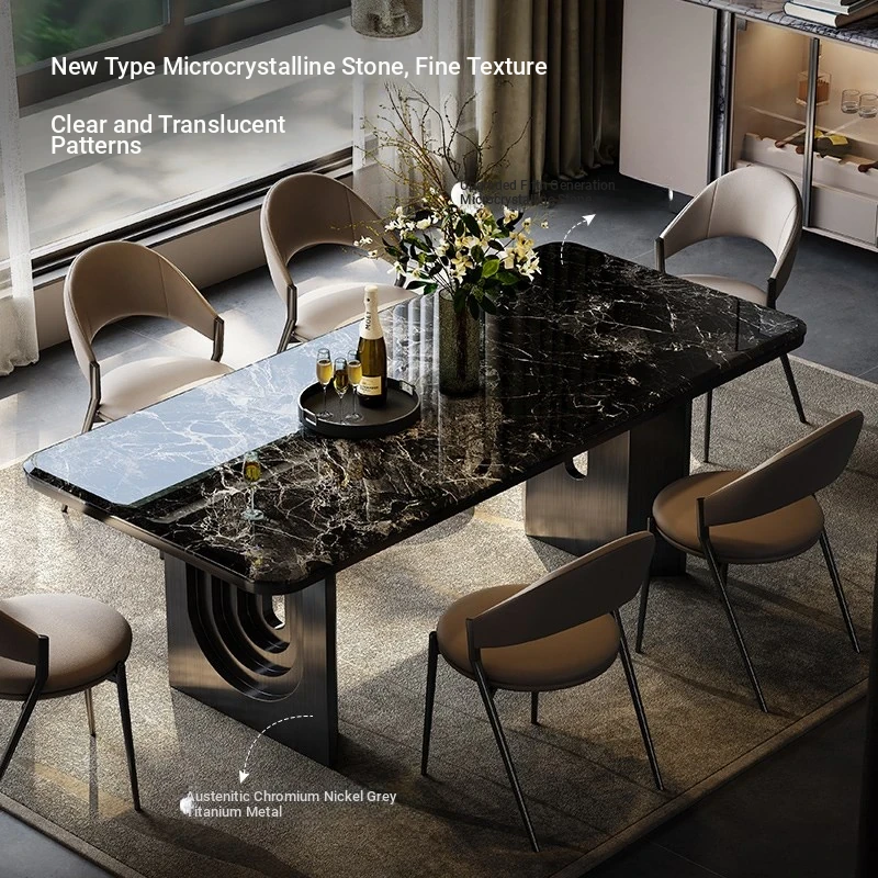 Chengjun Luxury Natural Marble Dining Table Set - Elegant Rectangle Italian Minimalist Microcrystalline Stone Table with Chairs, Perfect for Stylish Dining Spaces