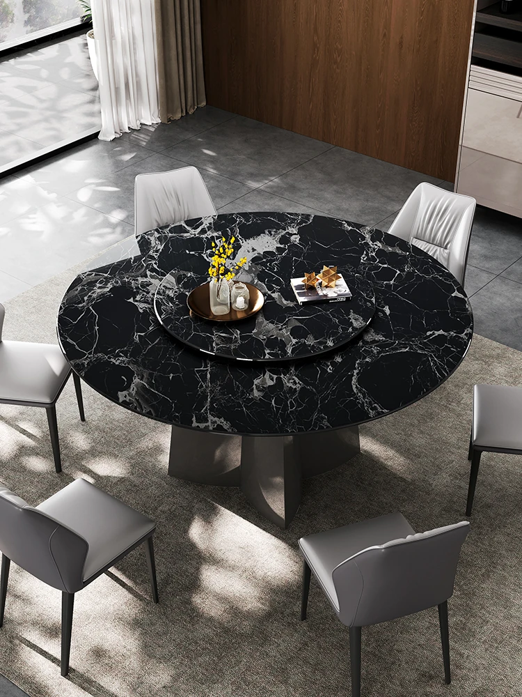 Imported Marble Dining Table - Modern Minimalist Design with Luxurious Natural Stone, Complete Home Matching, Features Embedded Rotating Tray, Solid Wood Round Dining Table.