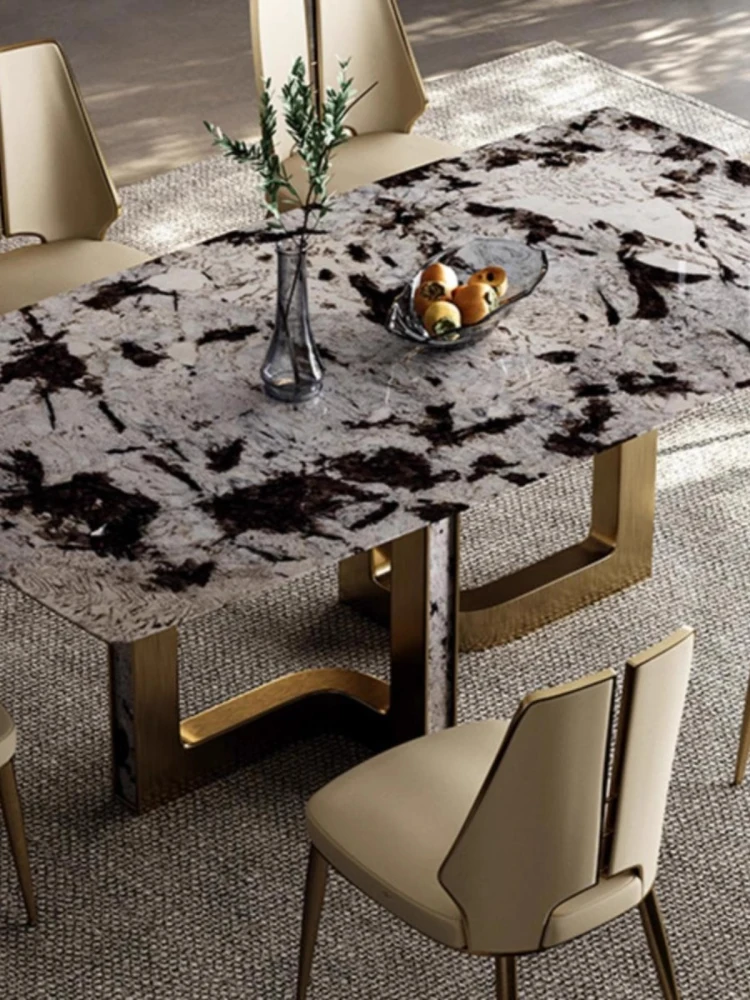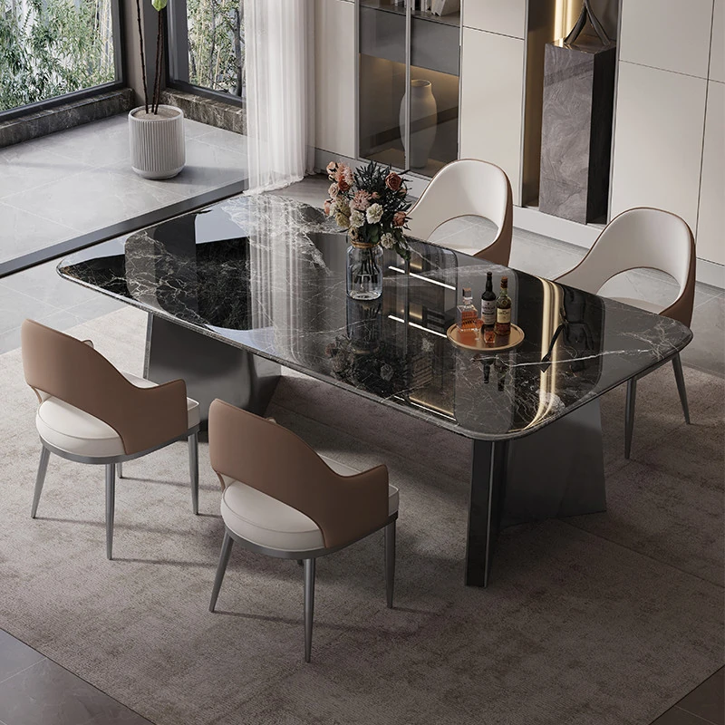 Elegant Marble Dining Table Set - Modern Minimalist Rectangular Design for Home Use, Perfect for Villas and Stylish Dining Rooms
