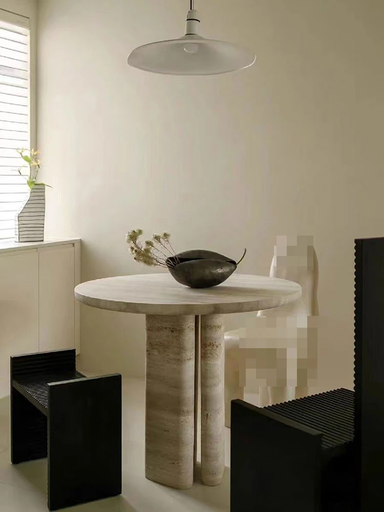 Wabi-Sabi Style Round Dining Table - Luxurious Creamy Natural Marble for Villas and Spacious Living Rooms - Perfect for Elegant Home Dining