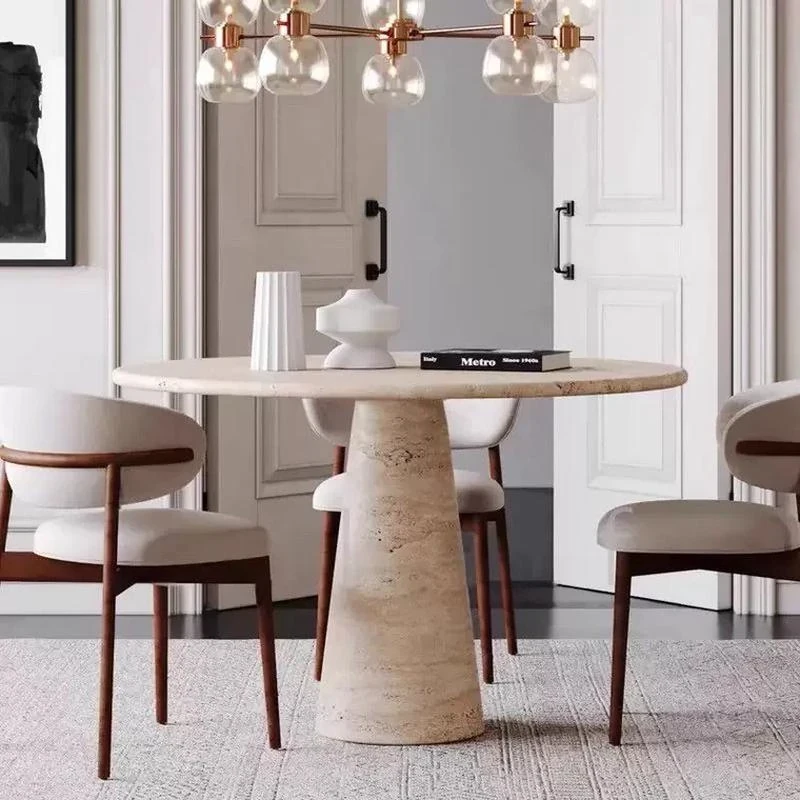 Elegant Wabi-Sabi Style Natural Marble Dining Table for Villas and Small Homes – Perfect for Living Room and Dining Areas, Embrace Luxury and Sophistication