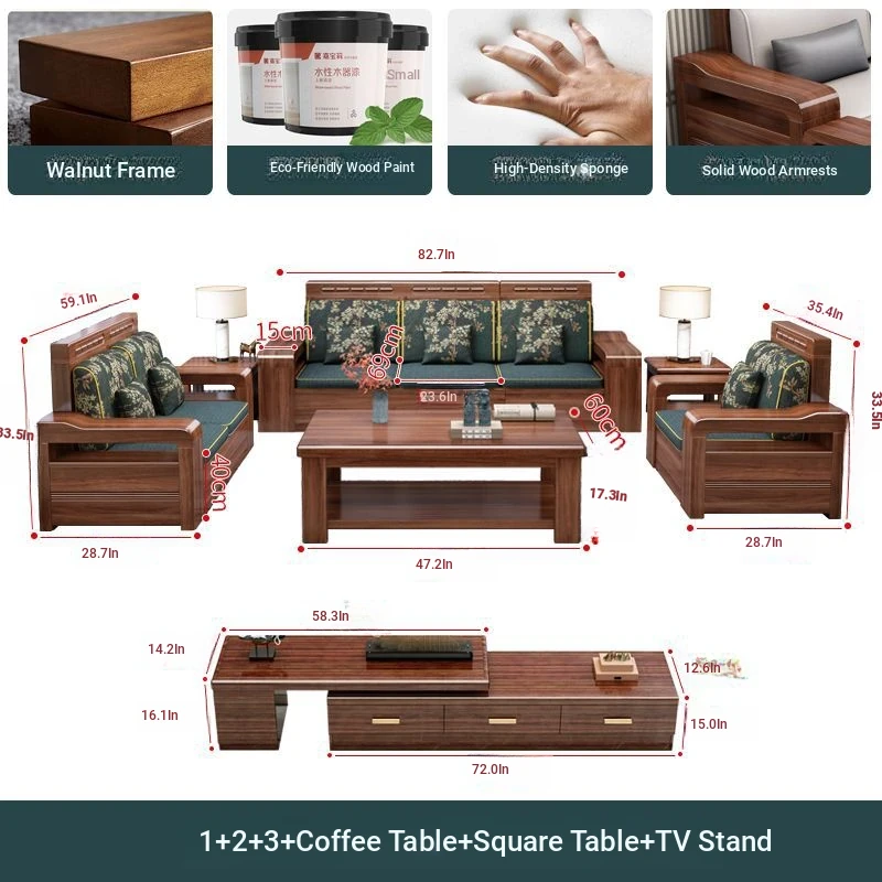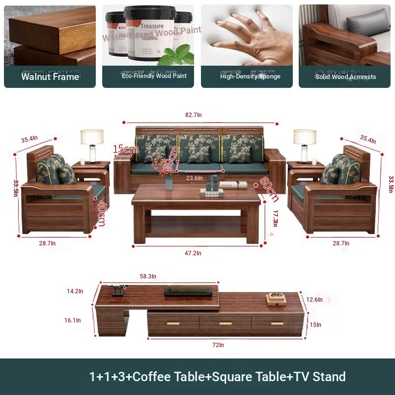 1+1+3 + coffee table + square + TV cabinet