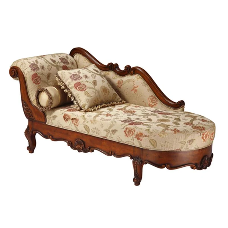 American Style Chaise Lounge - Elegant Upholstered Daybed for Bedroom and Living Room, Comfortable Lazy Sofa, Solid Wood European Design Chaise Chair
