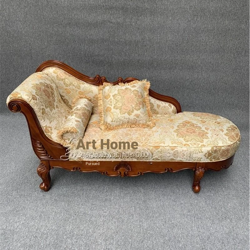 American-style Chaise Lounge Chair - Elegant Upholstered Sofa for Bedroom and Living Room - Comfortable Lazy Sofa with Solid Wood Frame - European Design Daybed