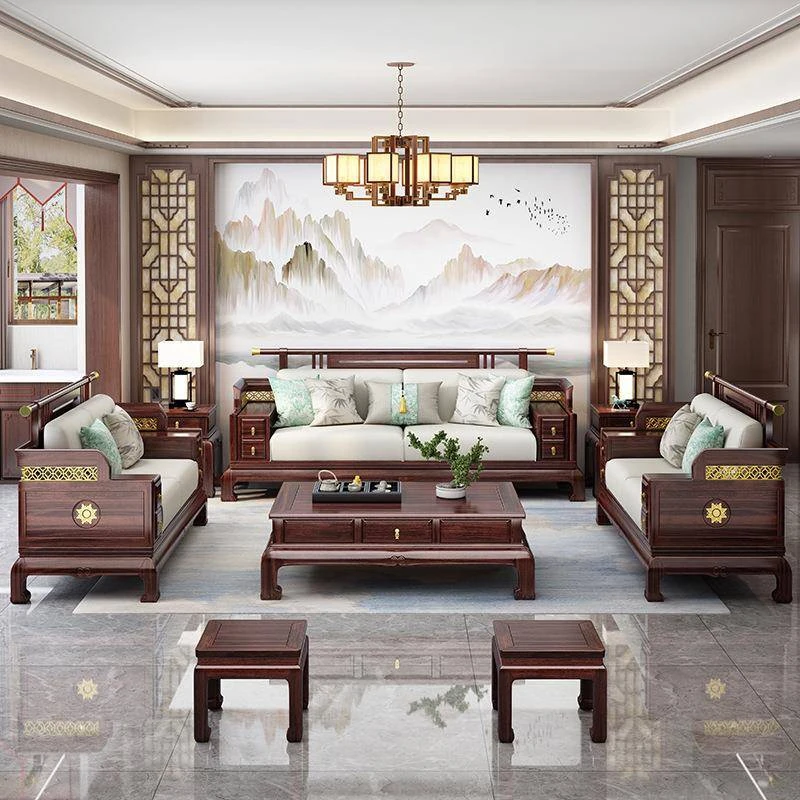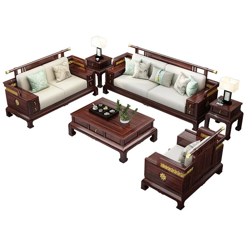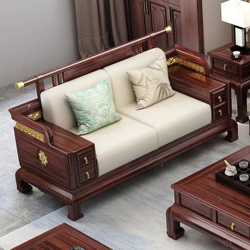 Antique Style Solid Wood Sofa Set in Chinese Blackwood - Perfect for Small to Medium Spaces, Versatile for Winter & Summer Use, Model 6511#