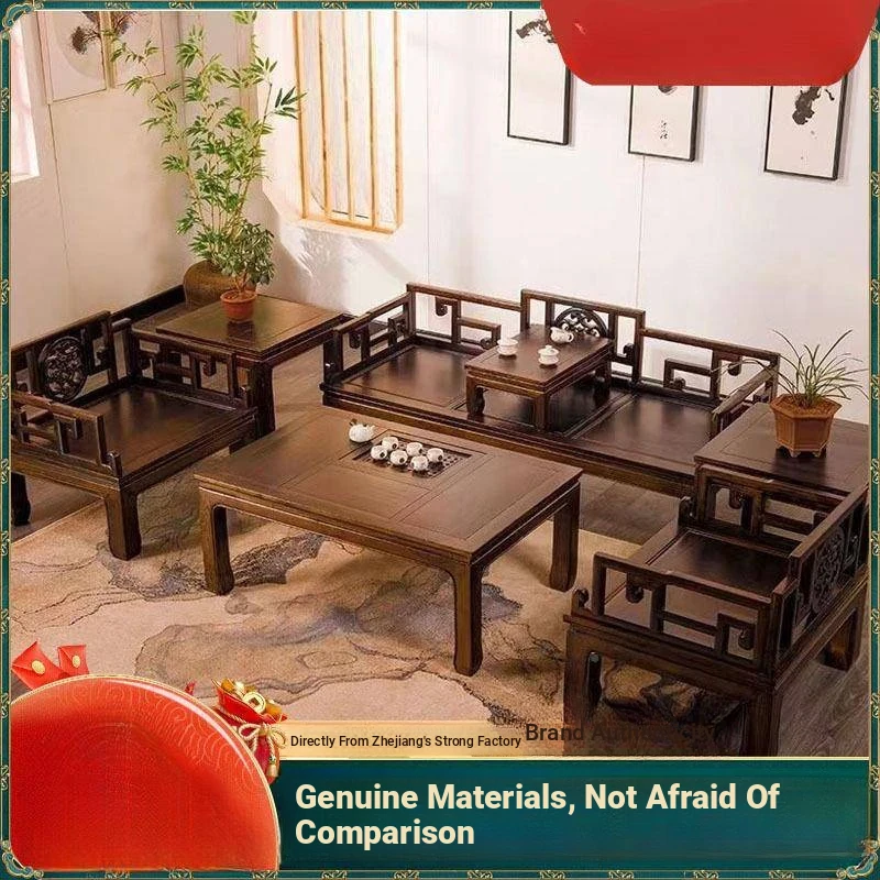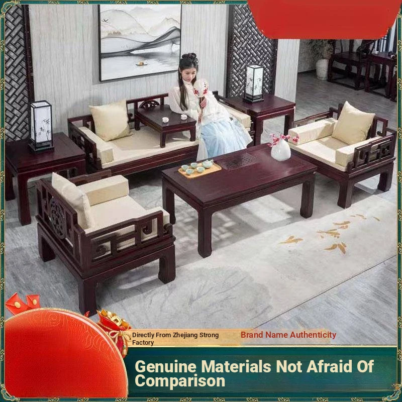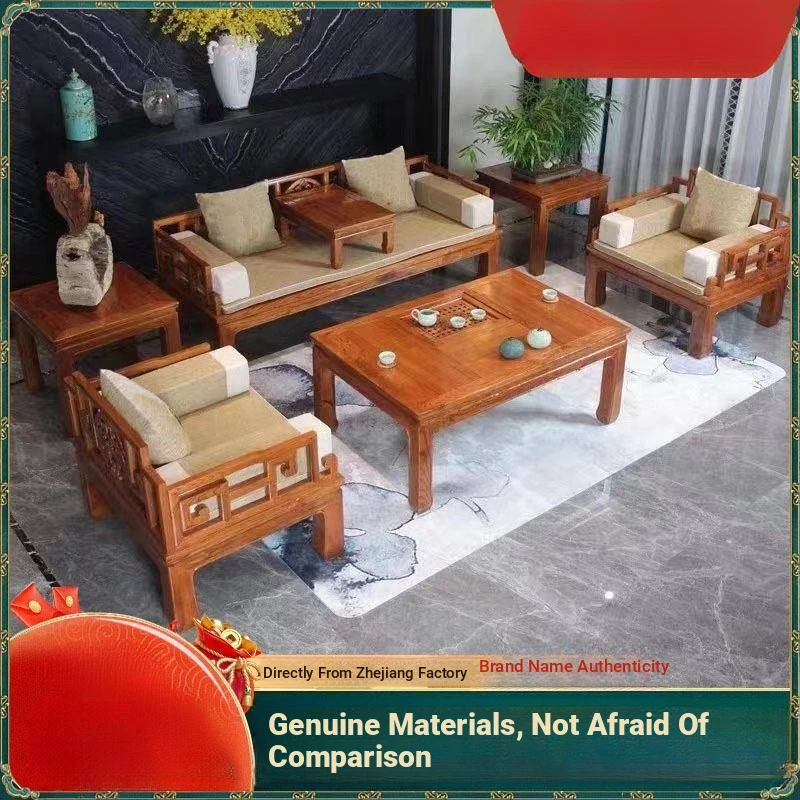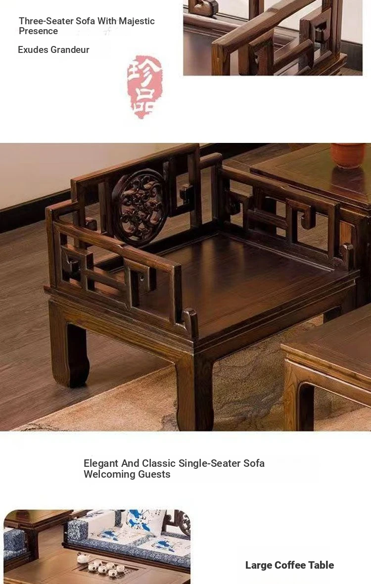 Chinese Solid Wood Sofa - Vintage Style Elm Wood Living Room Furniture Set - Elegant Traditional Design for a Cozy and Stylish Home