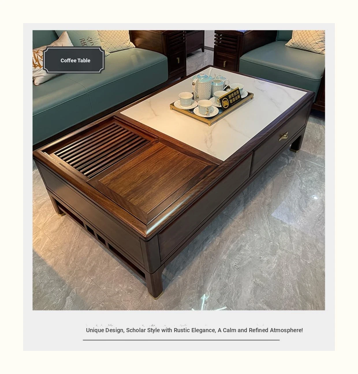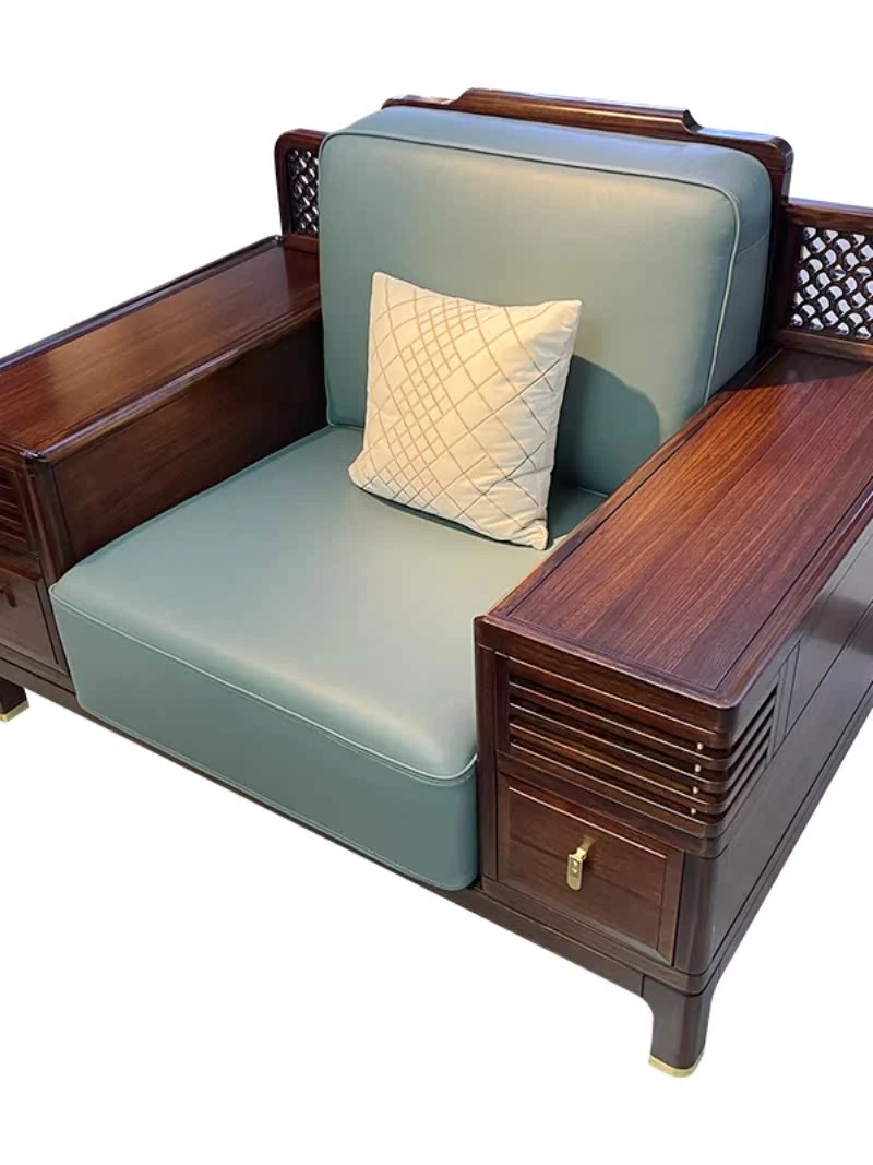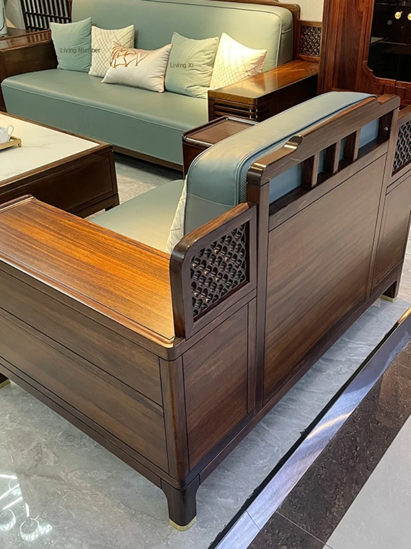 Designer New Chinese Style Solid Wood Sofa - Modern Minimalist High-End Villa Hotel Clubhouse Sample Room Furniture in Wenge Wood
