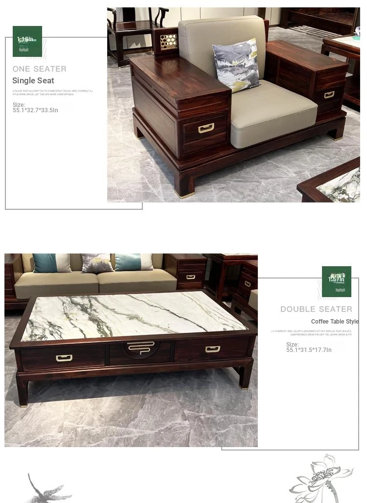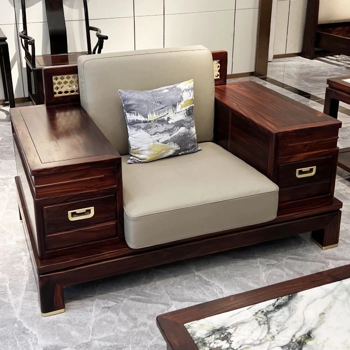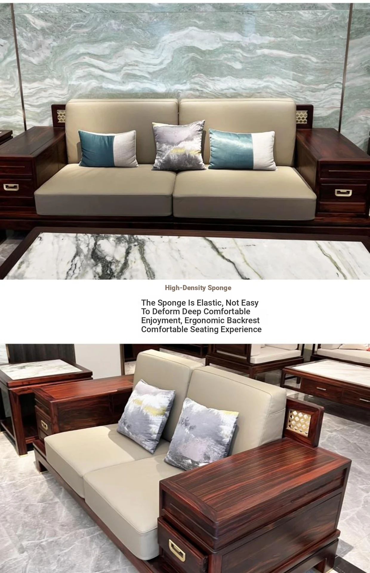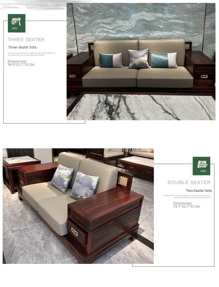 Designer New Chinese Style Solid Wood Storage Sofa Set - Modern Villa Living Room Luxury Vintage Genuine Leather in Deep Black