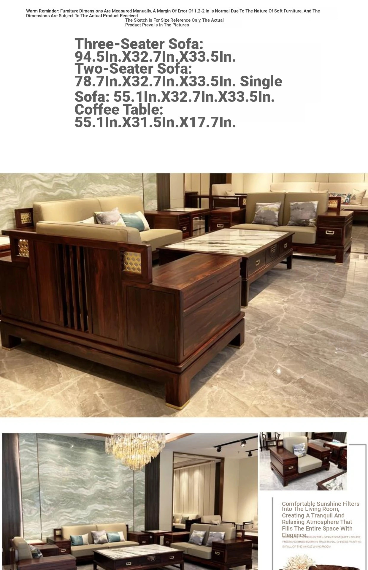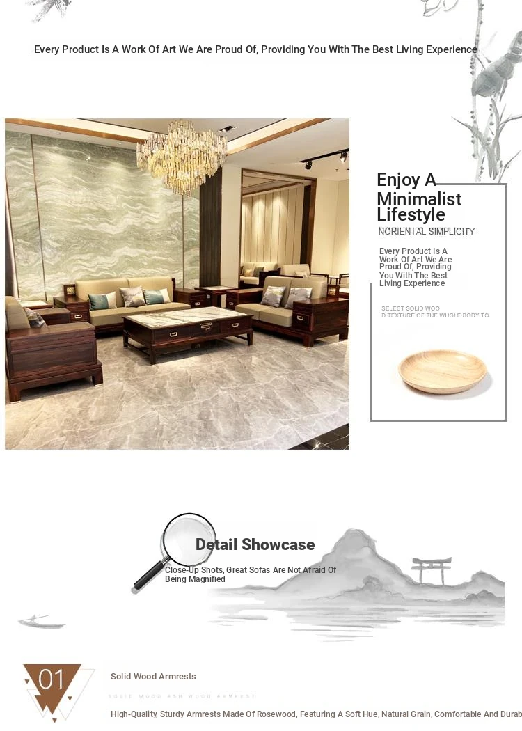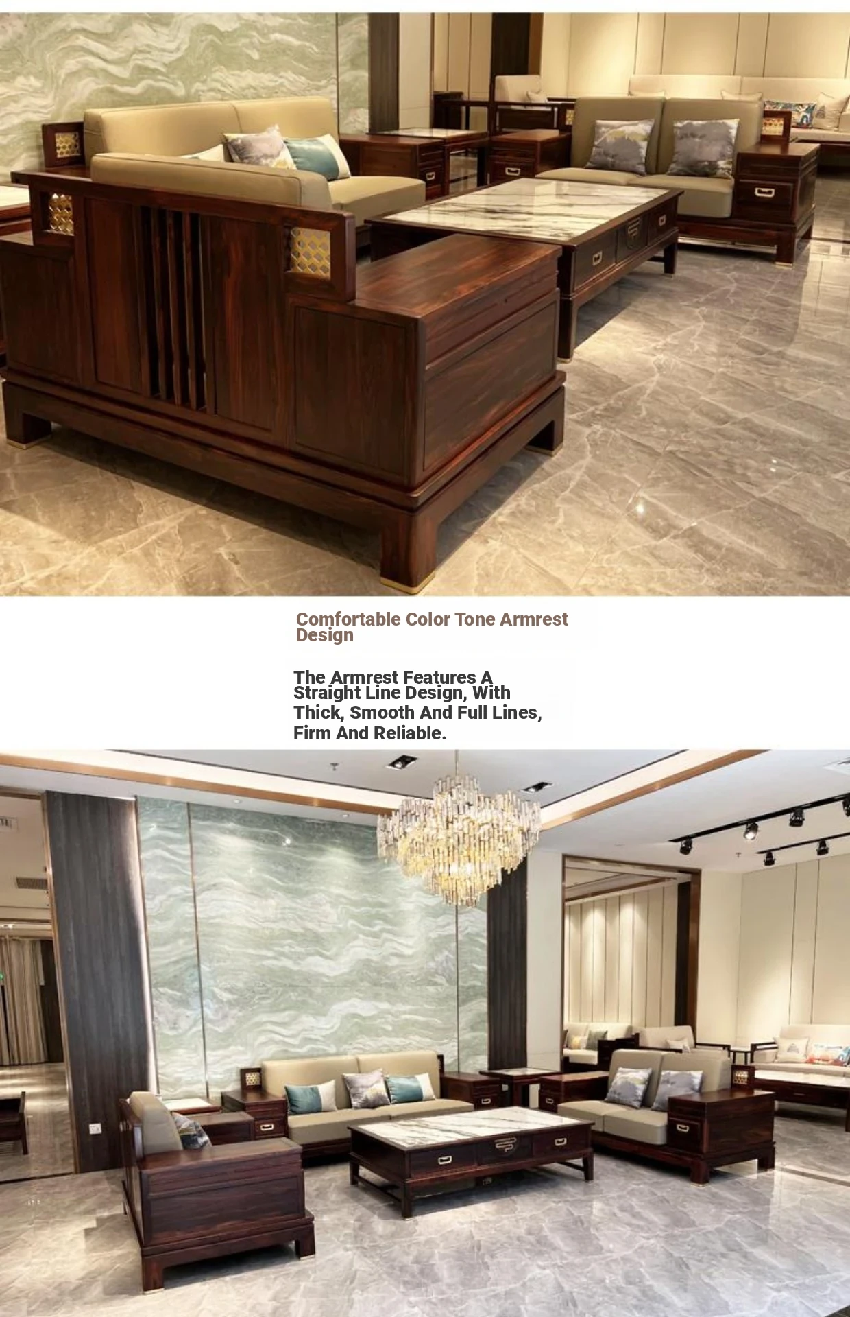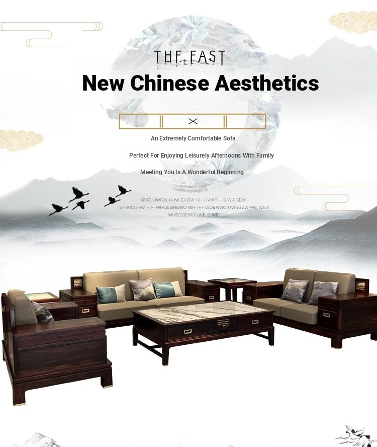 Designer New Chinese Style Solid Wood Storage Sofa Set - Modern Villa Living Room Luxury Vintage Genuine Leather in Deep Black