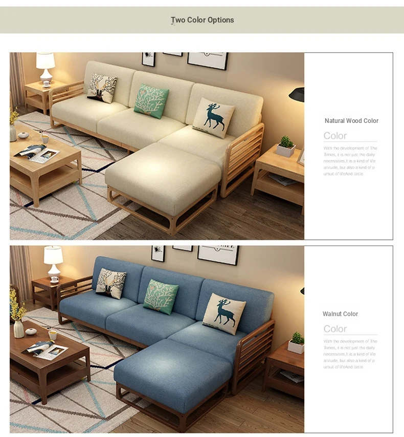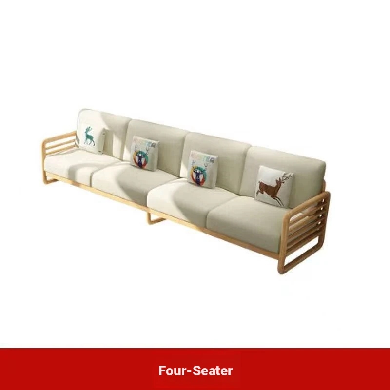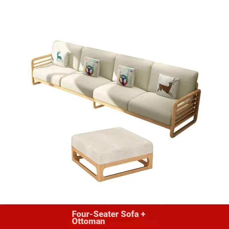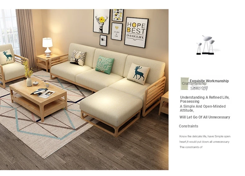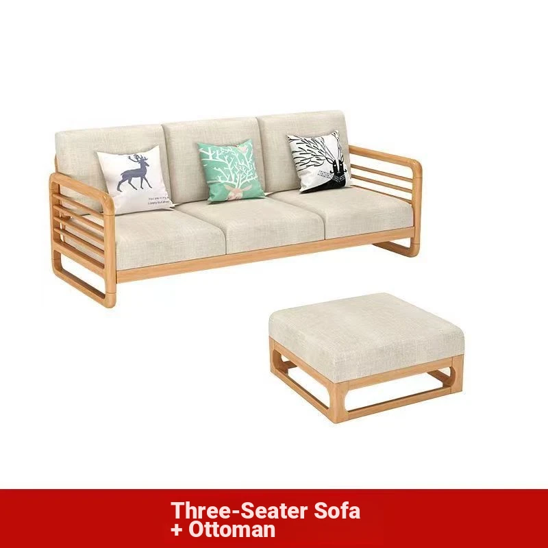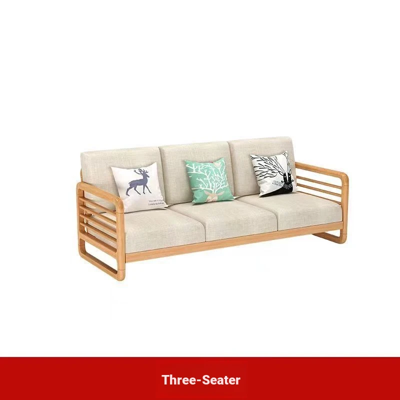 Elegant Chinese Solid Wood Sofa Set for Small Spaces - Versatile Two- and Three-Seater Corner Daybed with Fabric Upholstery for Year-Round Comfort
