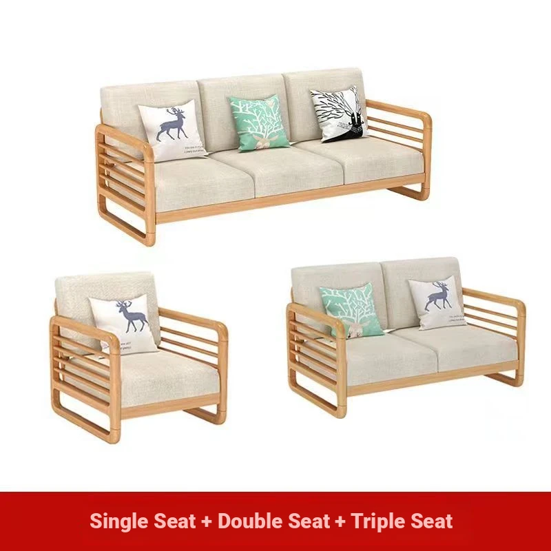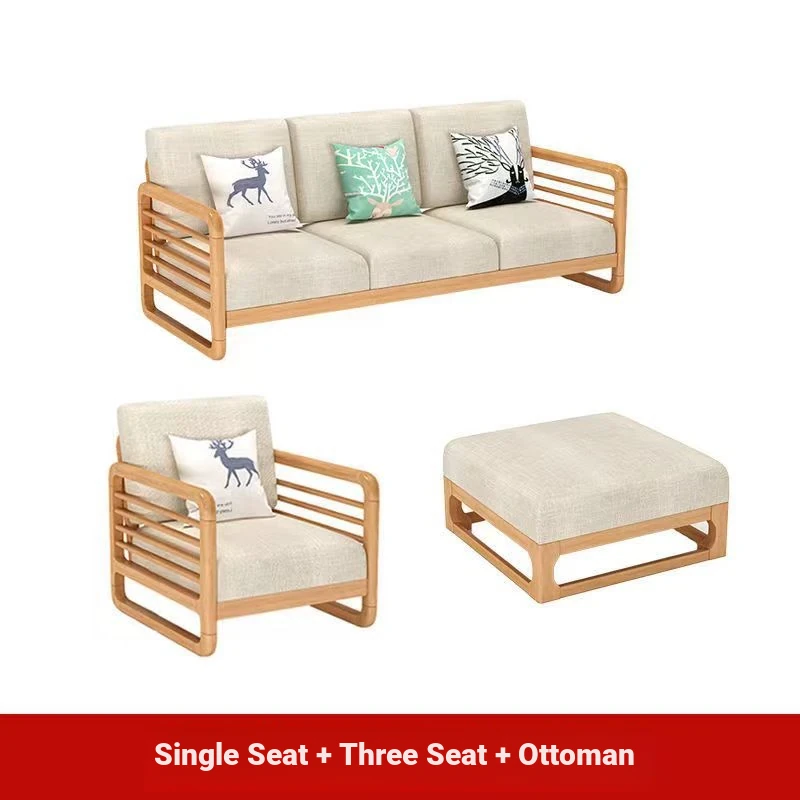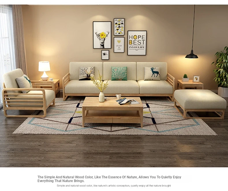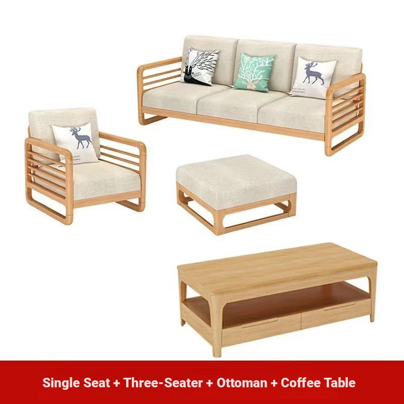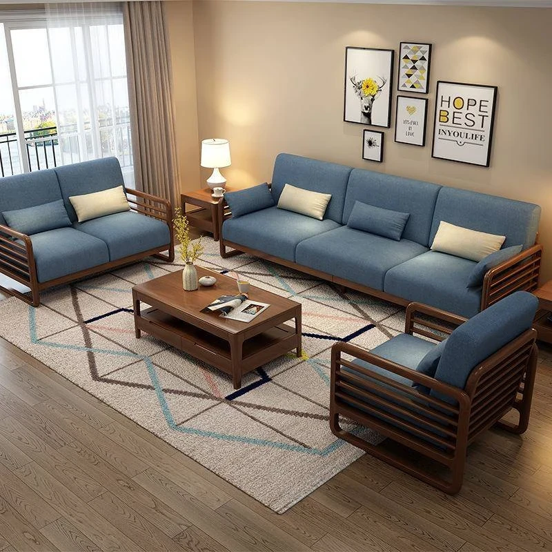 Elegant Chinese Solid Wood Sofa Set for Small Spaces - Versatile Two- and Three-Seater Corner Daybed with Fabric Upholstery for Year-Round Comfort