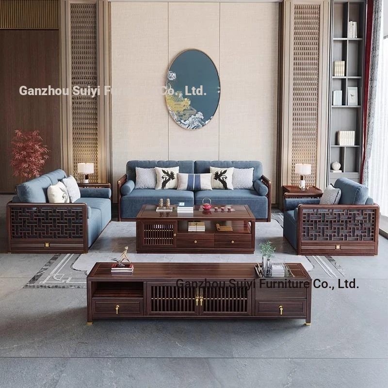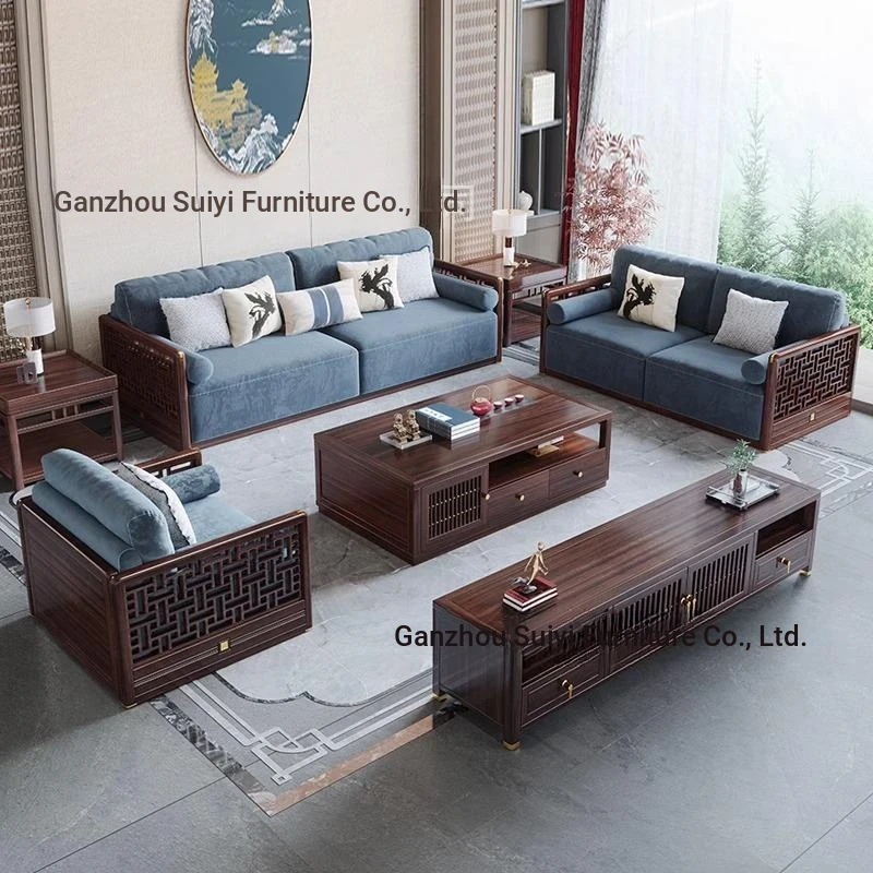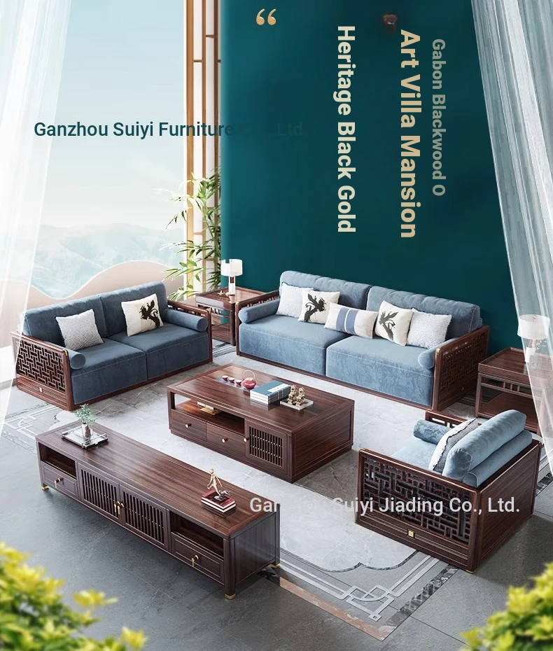 Elegant Chinese-Style Solid Wood Sofa Set - Exquisite Black Gold Wood for Spacious Villas and Living Rooms - Perfect for Modern Chinese Interiors