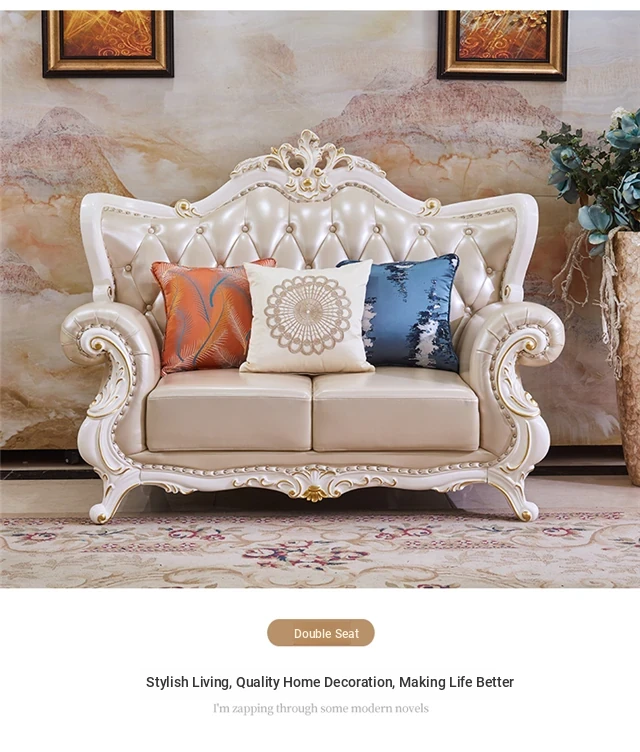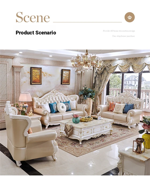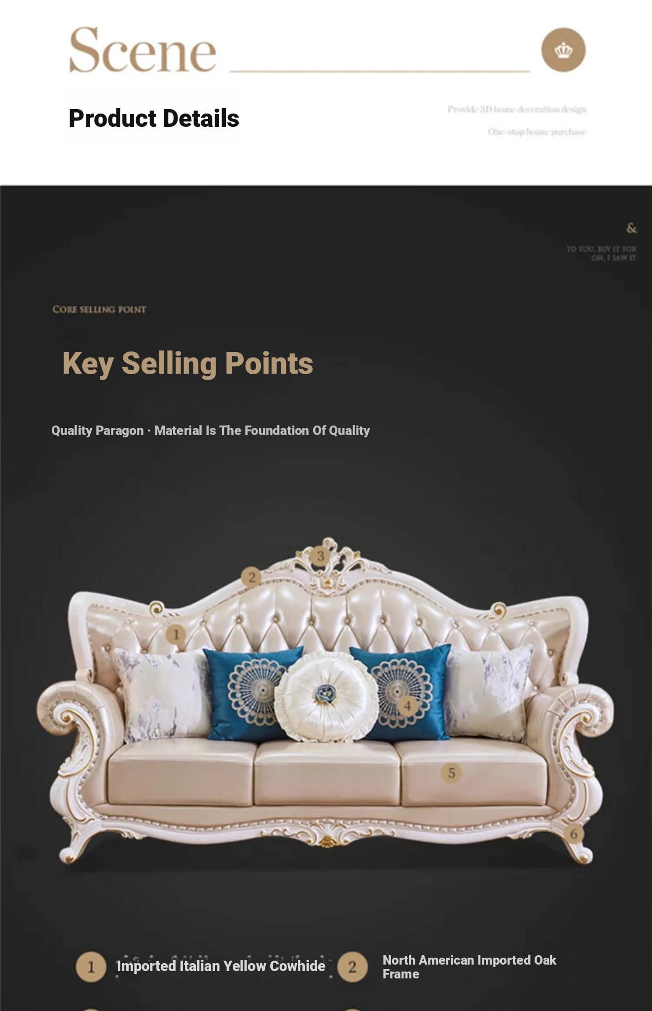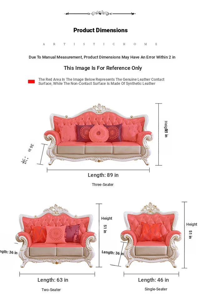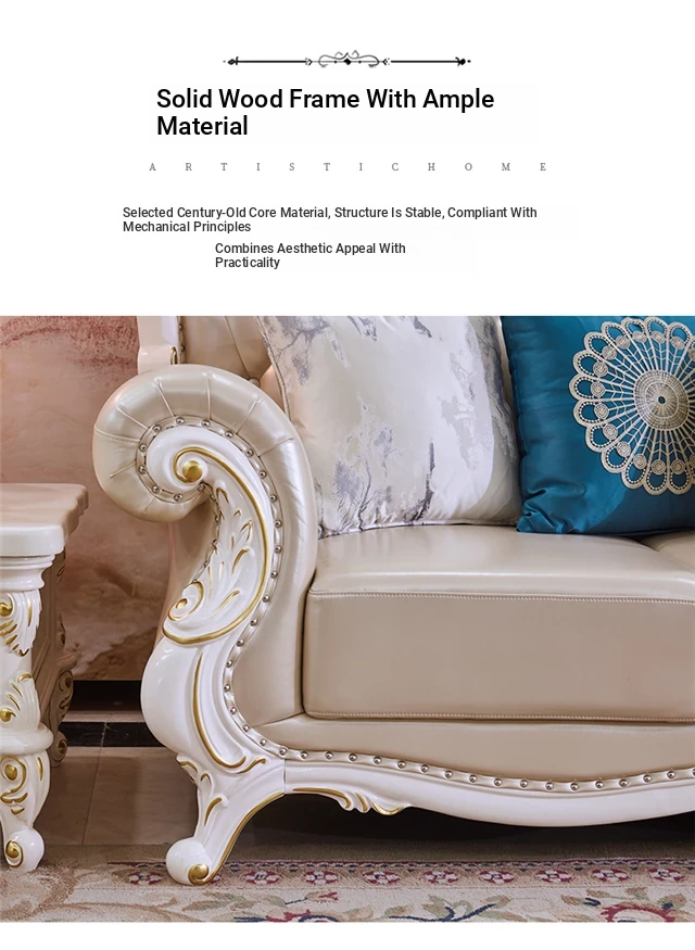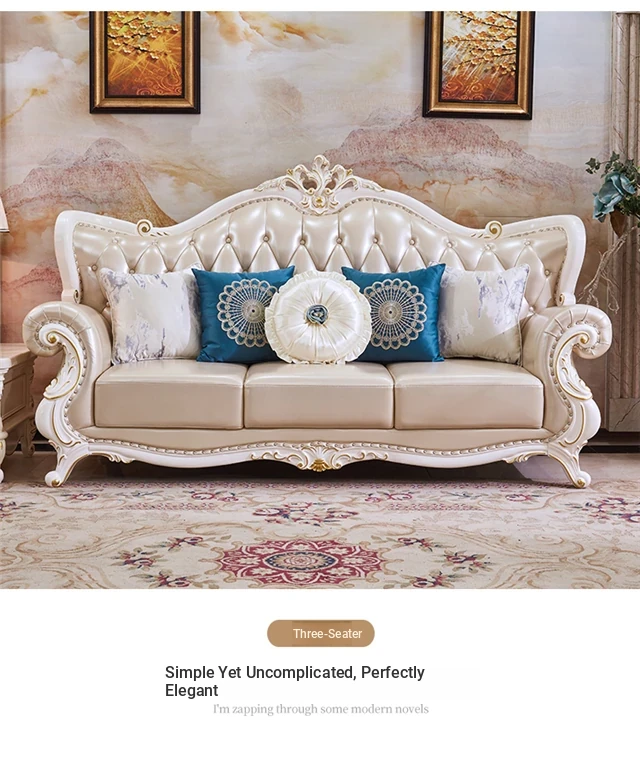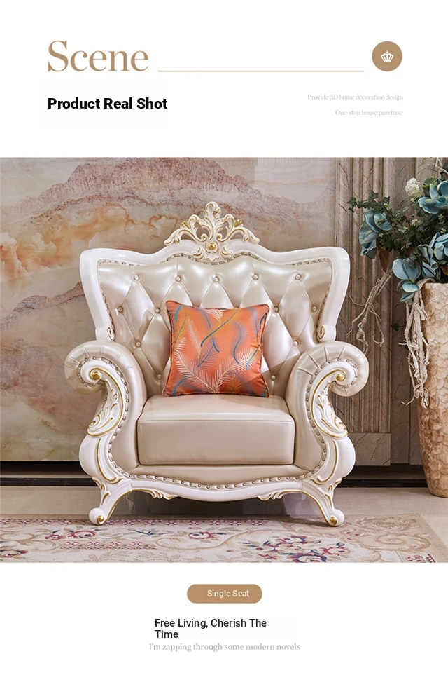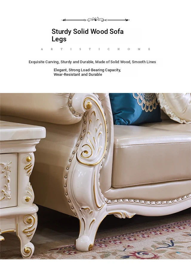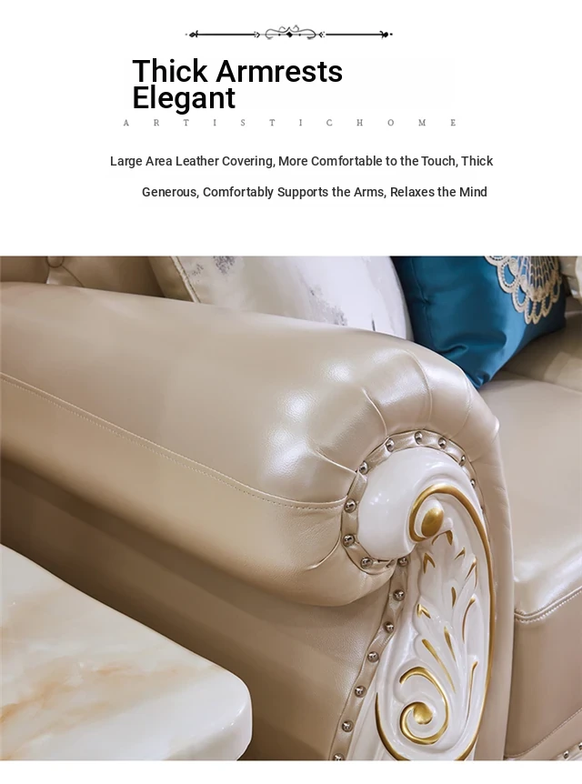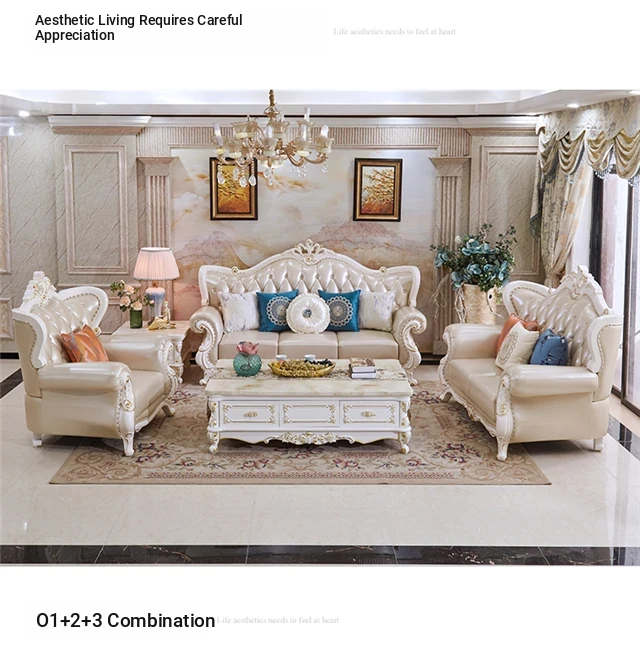Elegant European Style 123 Combination Sofa Set - French Luxury Leather Sofa for Spacious Living Rooms - Premium Top Grain Leather Furniture
