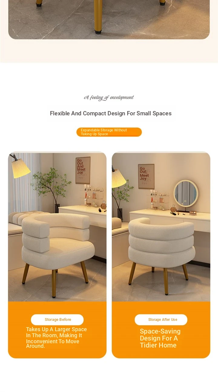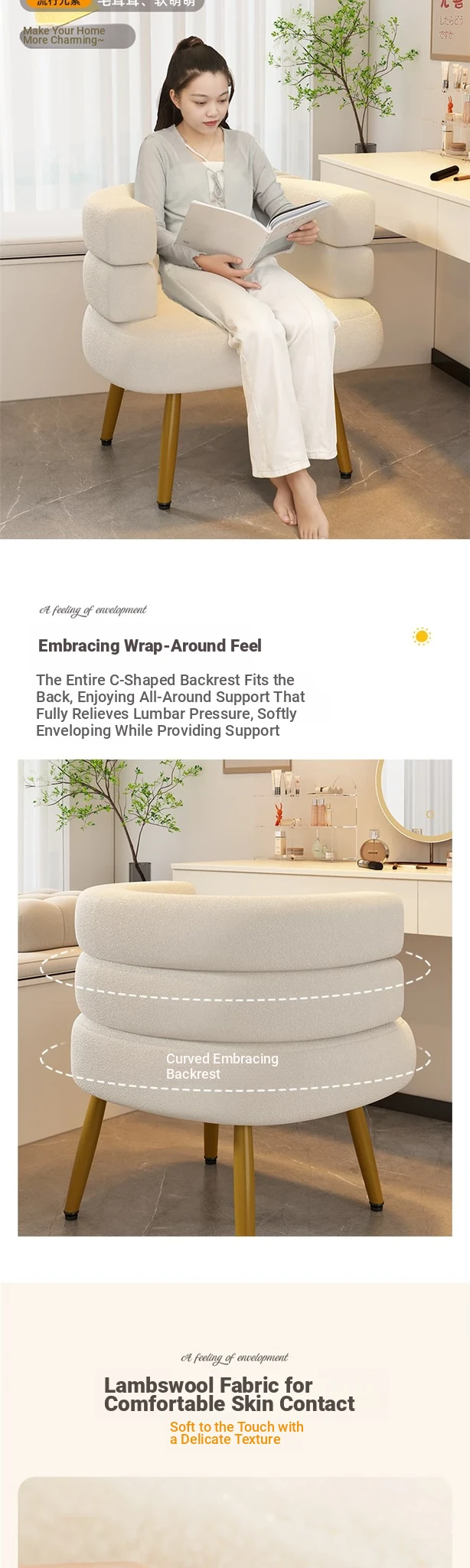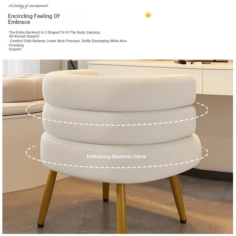 Elegant Makeup Chair for Women’s Bedroom – Stylish Vanity Stool with Backrest, 2023 Trendy Design for Home Use, Perfect for Creating a Luxurious Atmosphere.