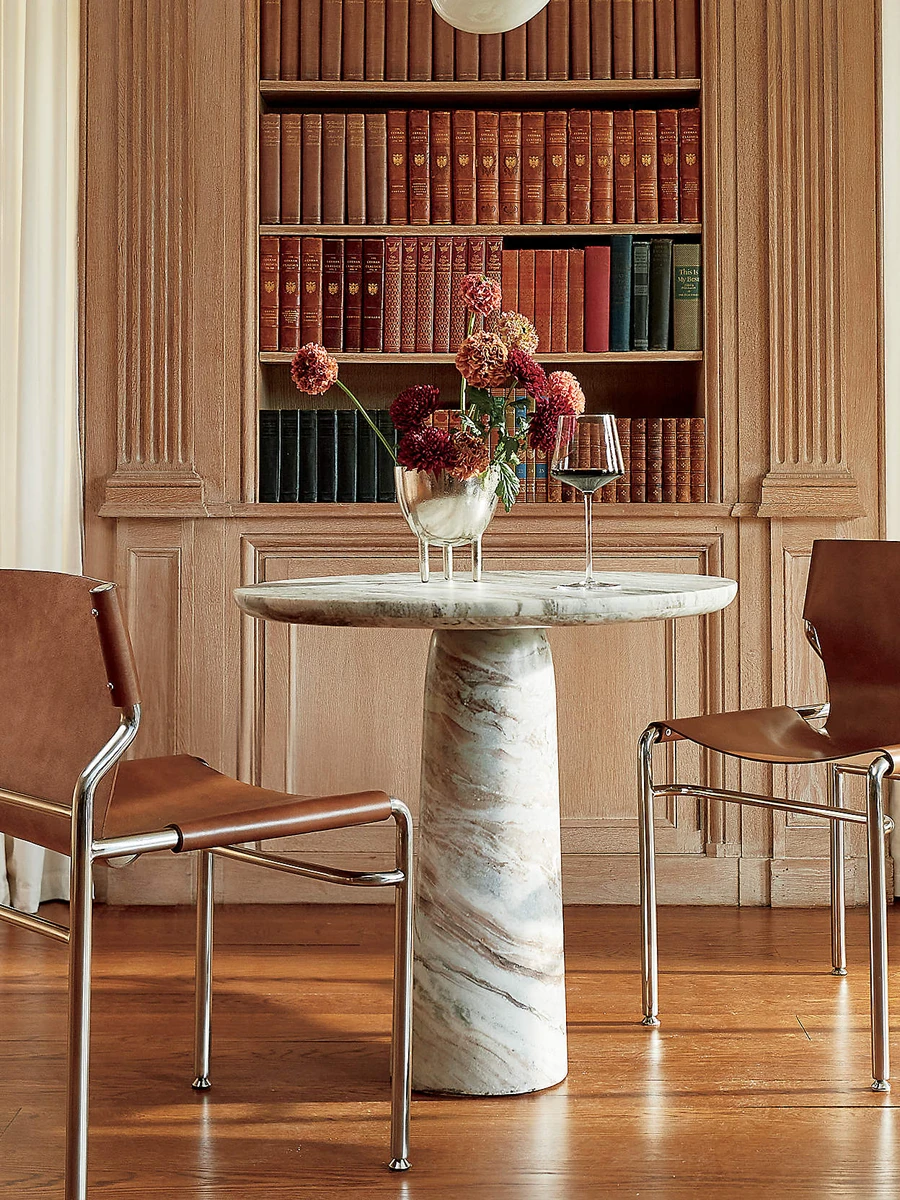 European Style Light Luxury Marble Dining Table for Small Spaces - Creative Round Table for Airbnb, Apartments, and Living Rooms - Trendy Design Accent Table