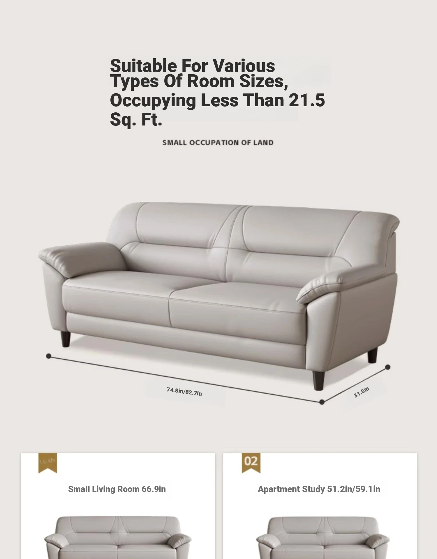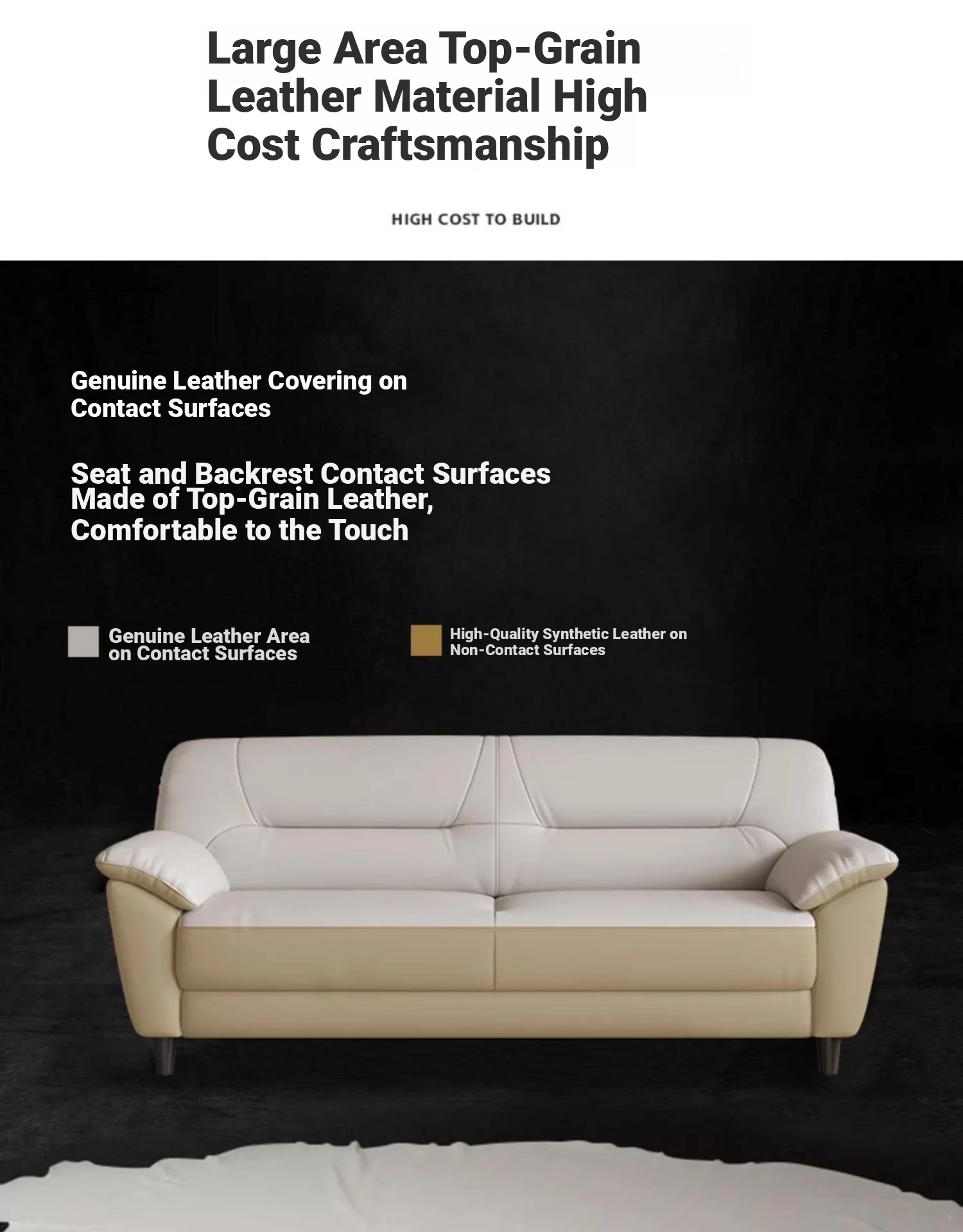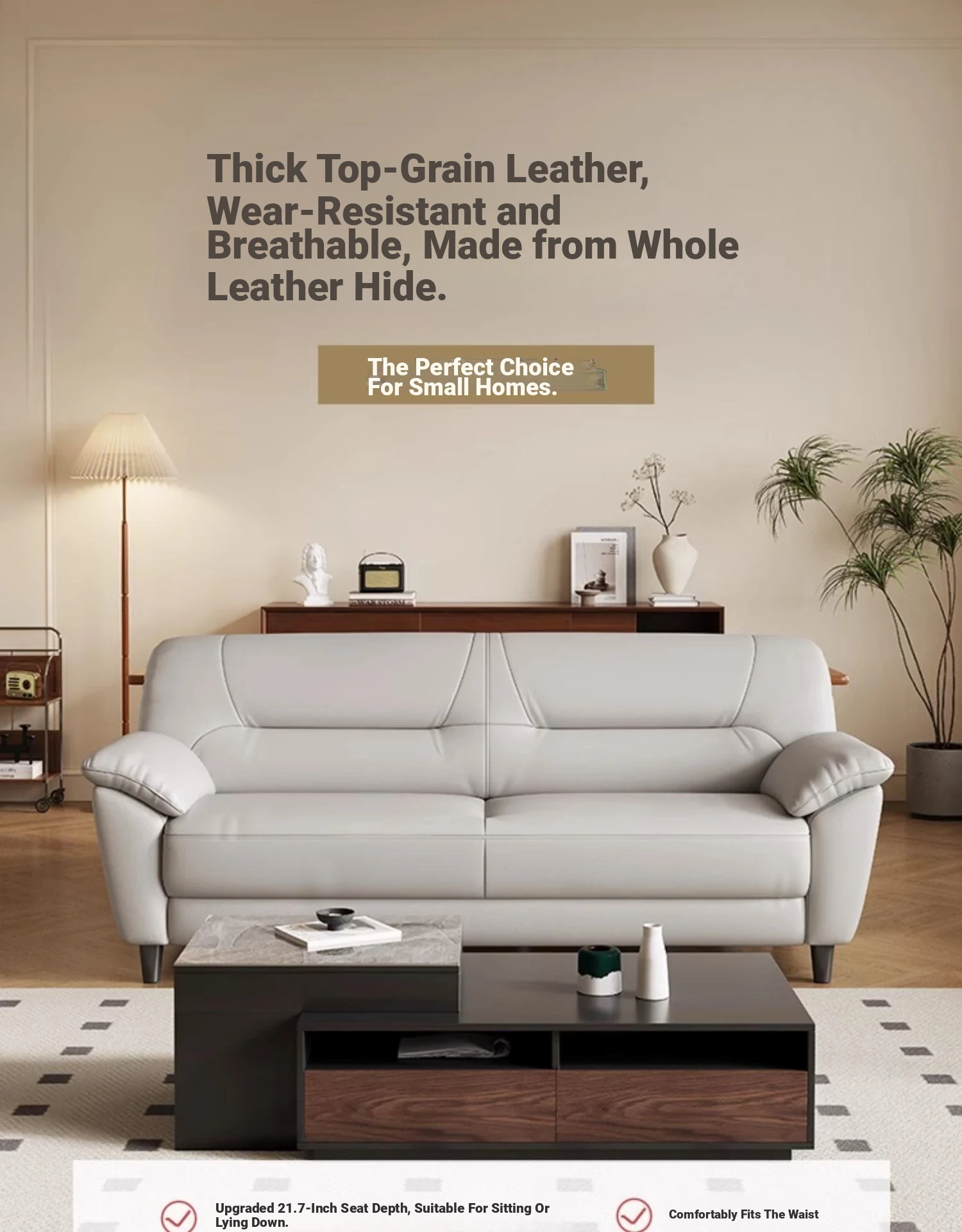 "Free Shipping to Hong Kong: Scandinavian Minimalist Double Leather Sofa Set for Small Spaces - Modern 3-Seater Living Room Couch"
